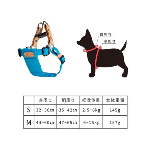 ・Mサイズ(首周り:44~60cm 胴回り:47~65cm 推奨体重:6~15kg)・重さ 157g