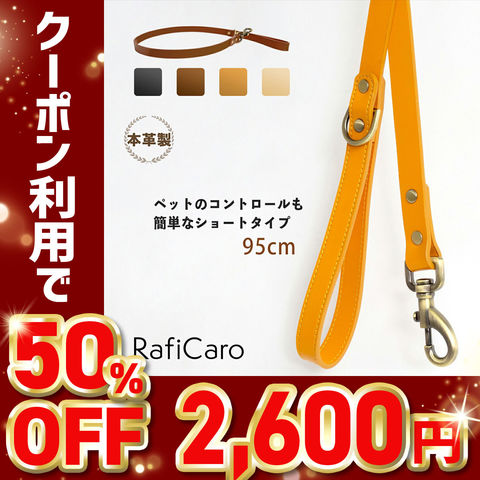 【50%OFFクーポン2,600円!】RafiCaro 本革ペット用ショートリード 95cm おしゃれなイタリアンレザー darkbrown/ダークブラウン