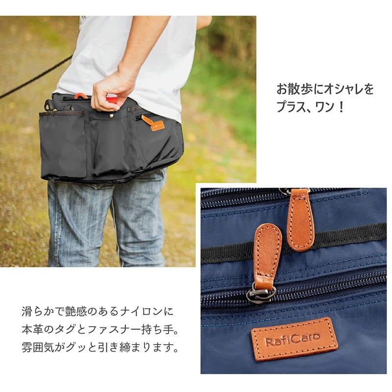 RafiCaro お散歩バッグ ウエストポーチ マナーポーチ ペットボトル おやつ入れ black/ブラック