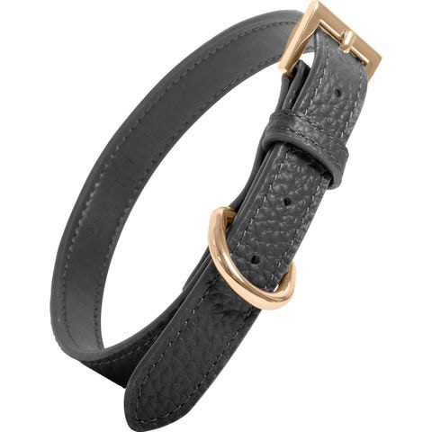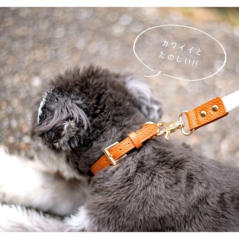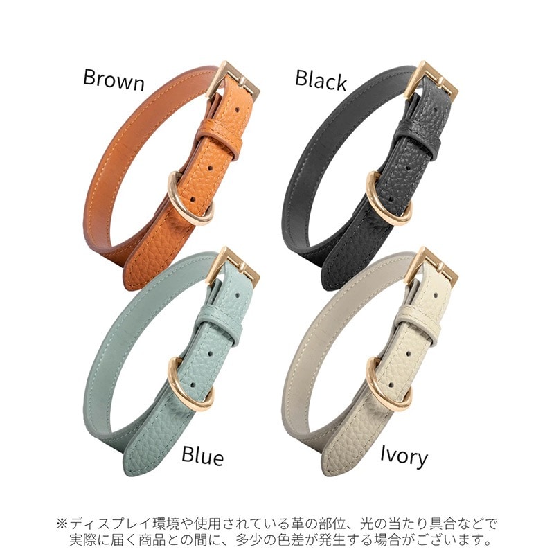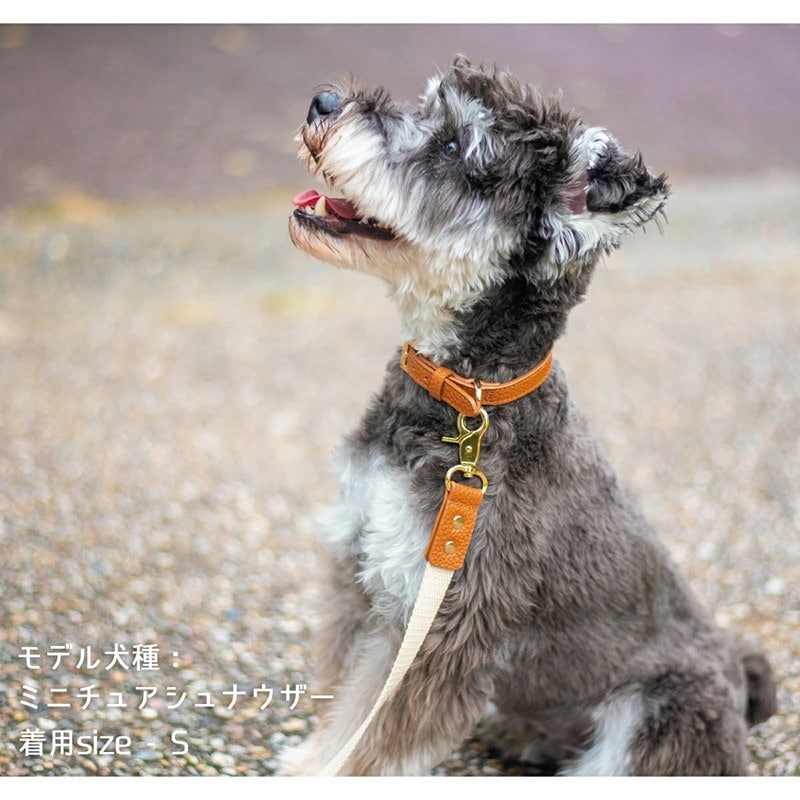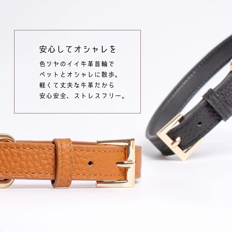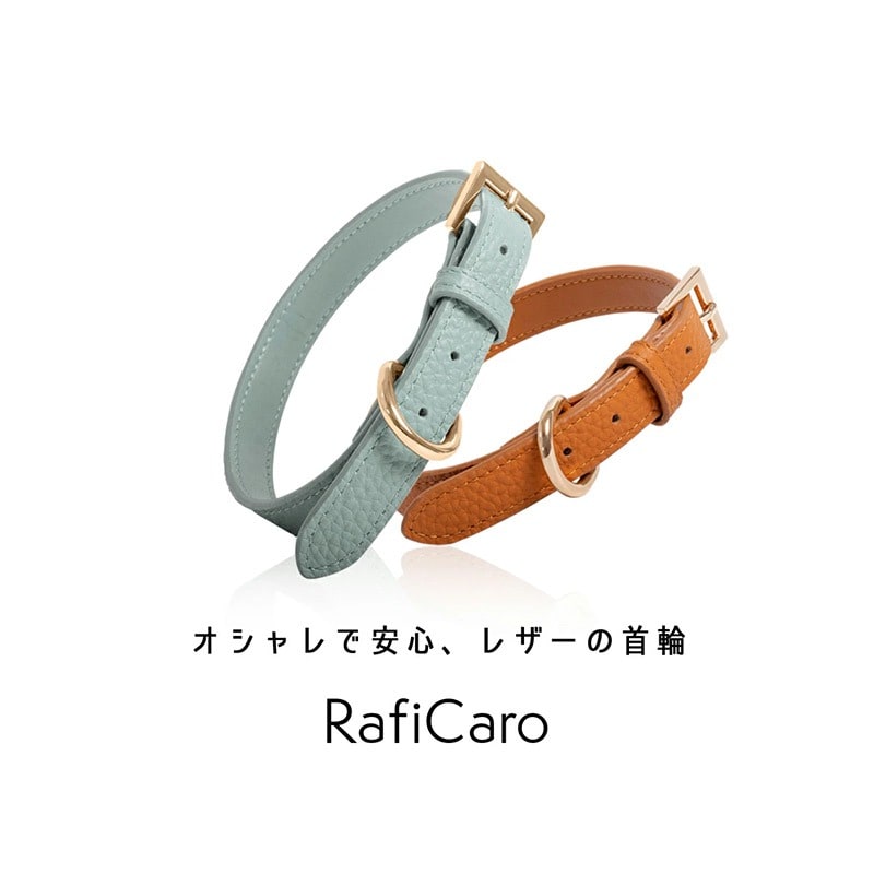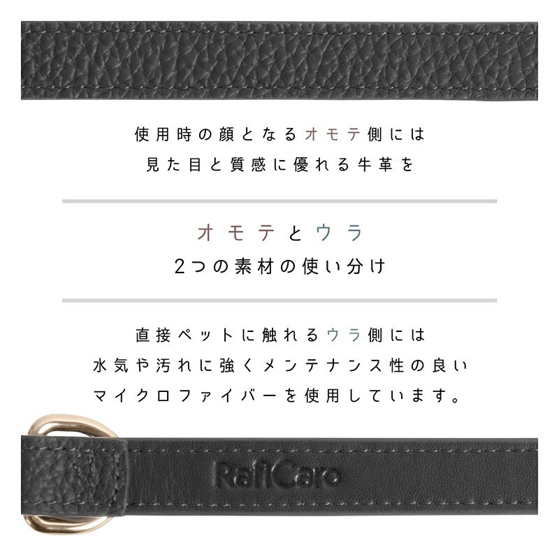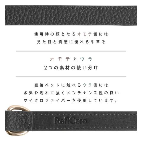 RafiCaro 小型犬用首輪 牛革 レザー 中型犬 軽い Dカン 散歩グッズ black/ブラック M