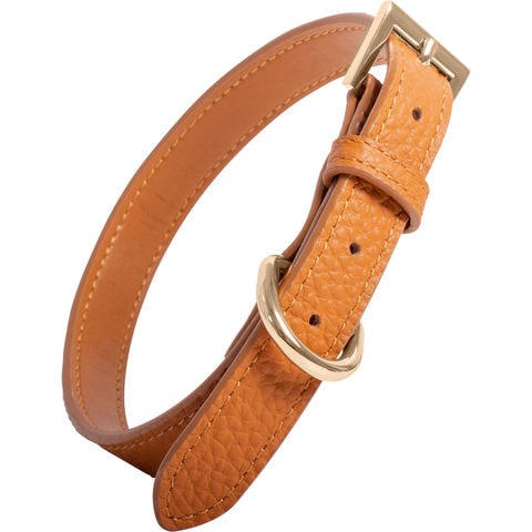 RafiCaro 小型犬用首輪 牛革 レザー 中型犬 軽い Dカン 散歩グッズ brown/ブラウン M