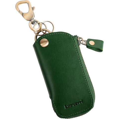 Lurverri 本革スマートキーケース カラビナ付き イタリアのブランド革 ブッテーロレザー green/グリーン