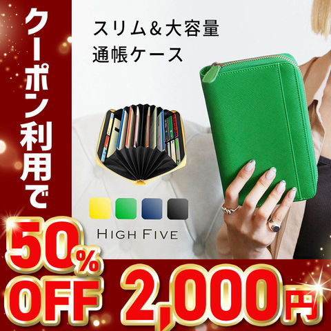 【限定50%OFFクーポン】【4,000円→2,000円】HIGH FIVE じゃばら通帳ケース 通帳8冊 カード16枚 スキミング防止 yellow/イエロー