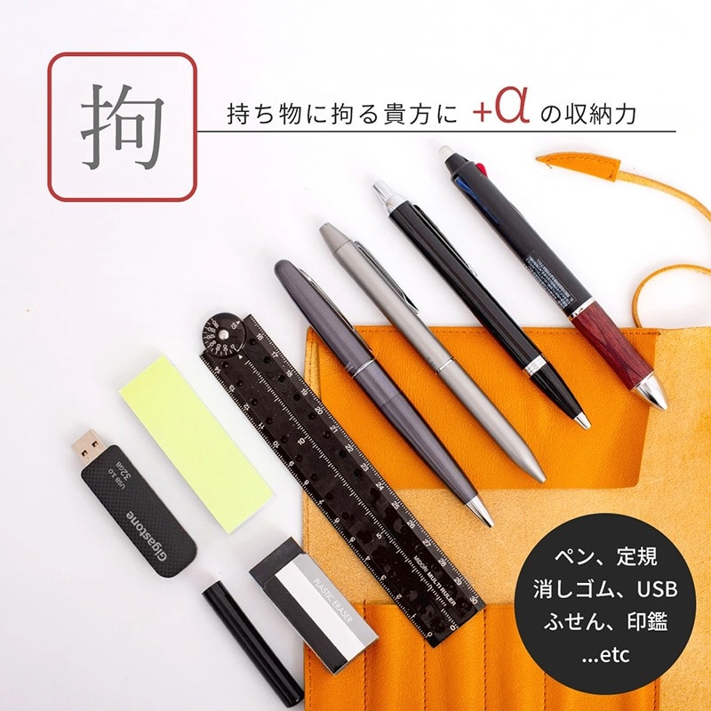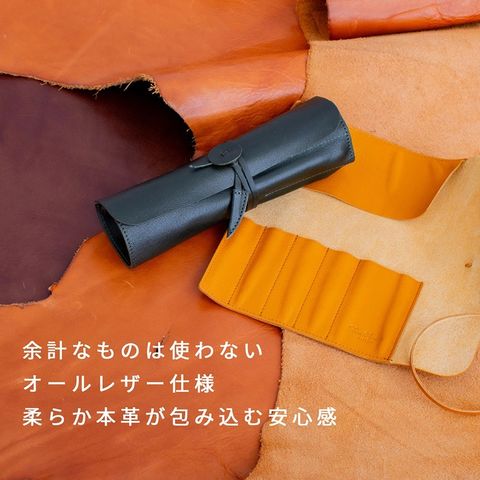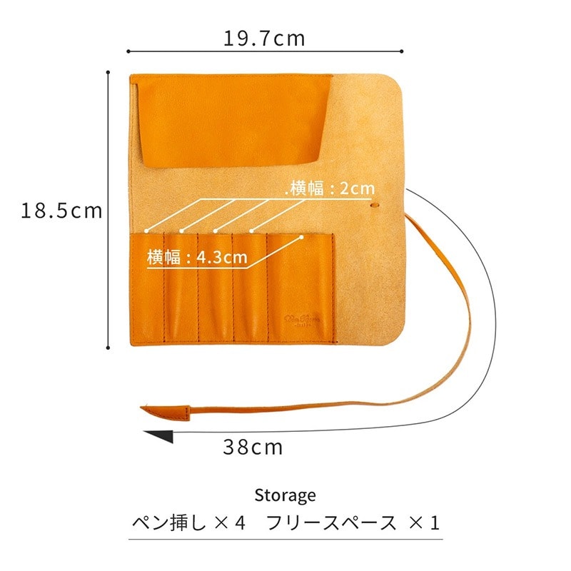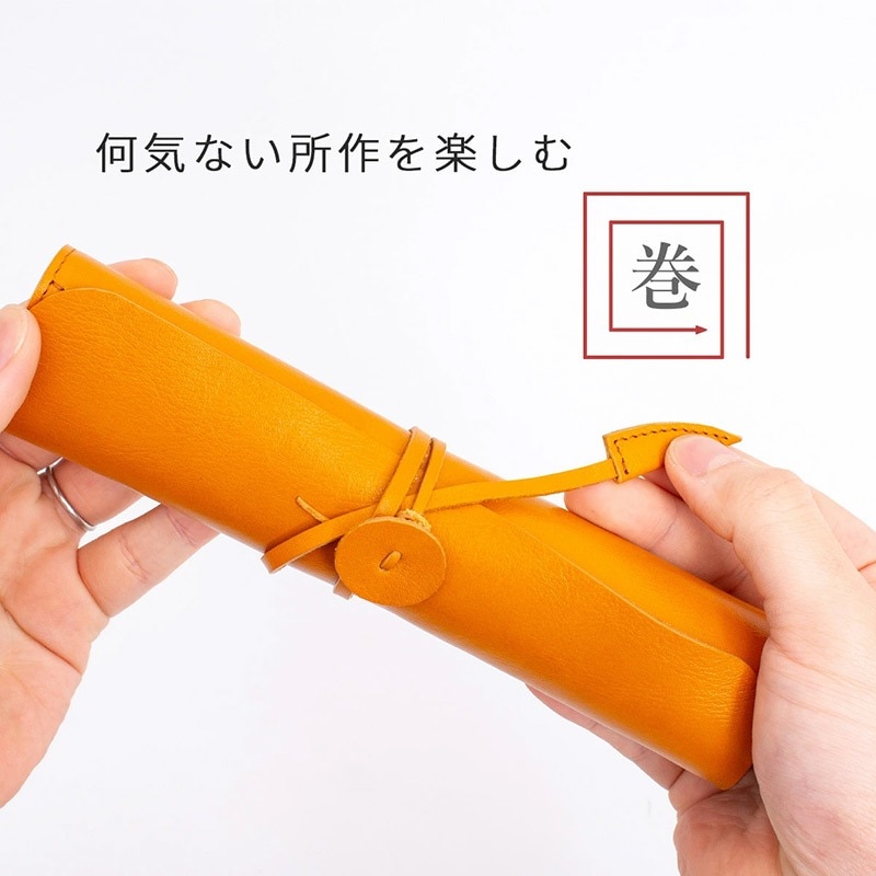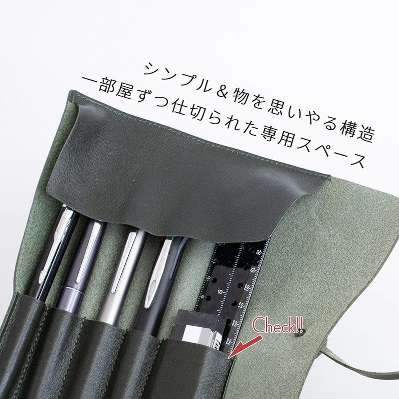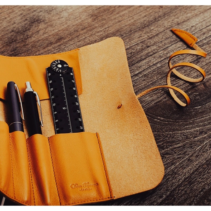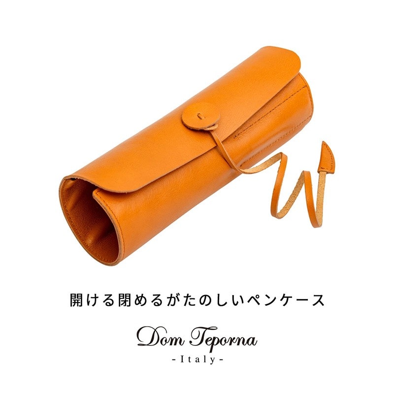 Dom Teporna Italy 本革ロールペンケース ペン4本 フリーポケット1 イタリアンレザー brown/ブラウン