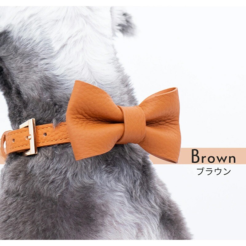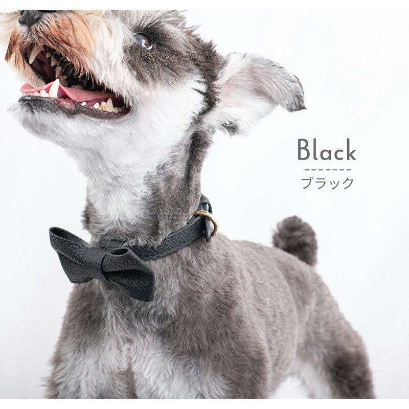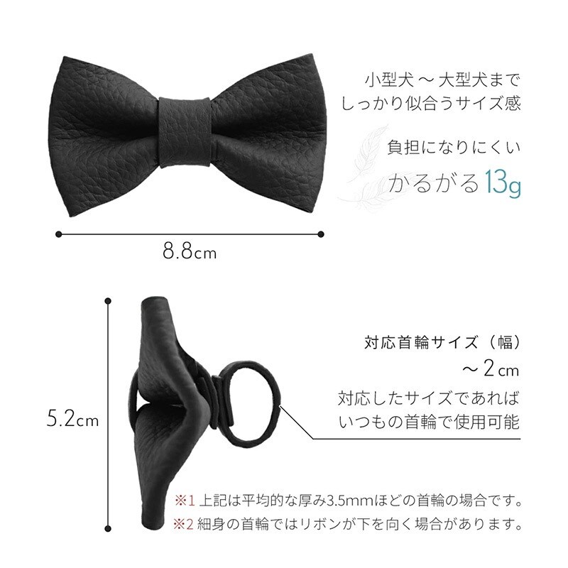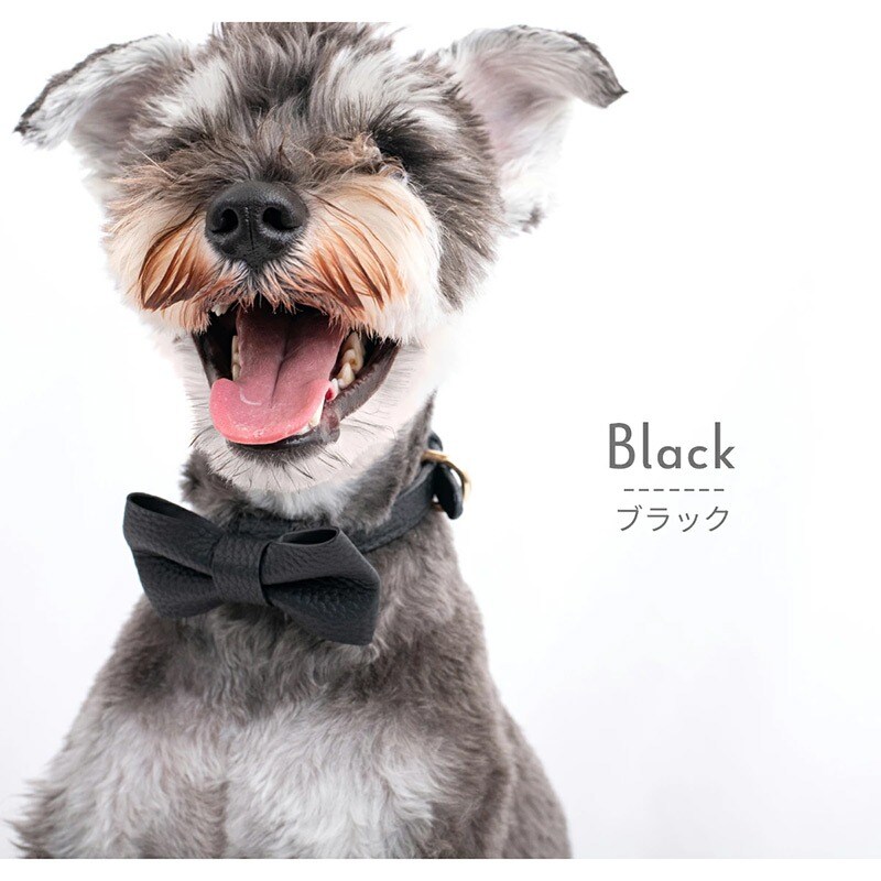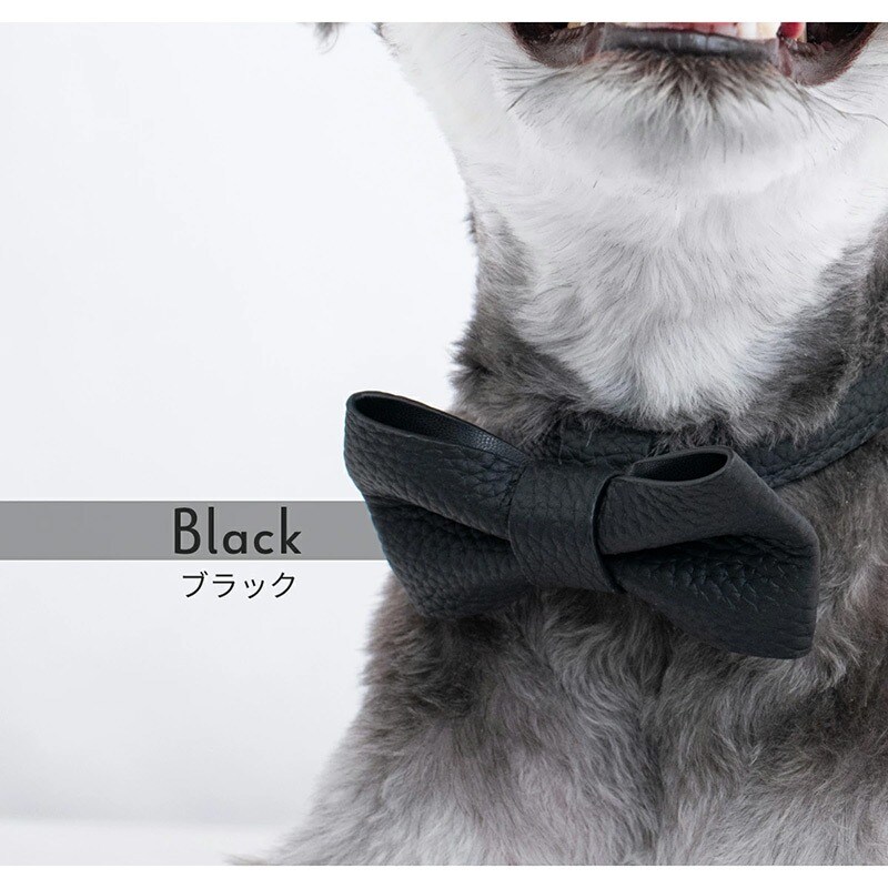 RafiCaro 首輪用アタッチメント牛革リボン 小型犬用 首輪に付けて簡単オシャレ black/ブラック