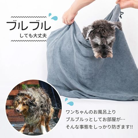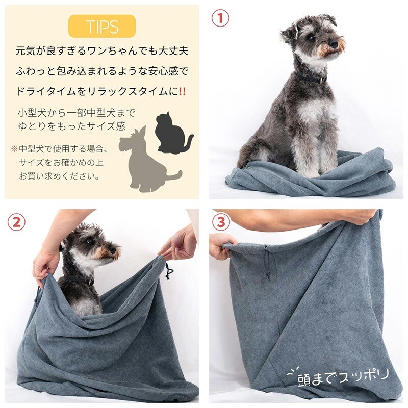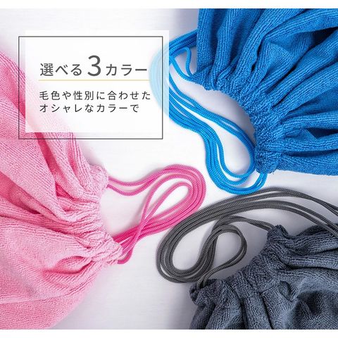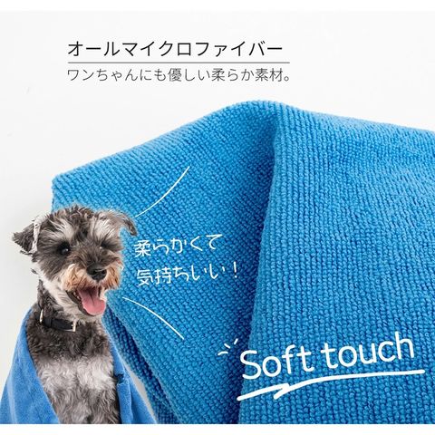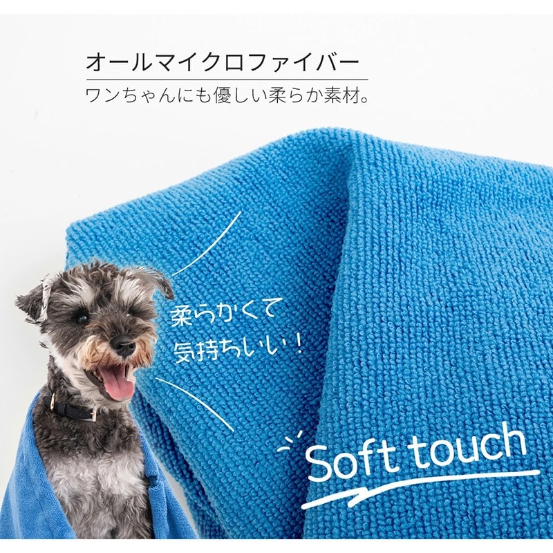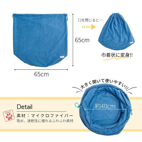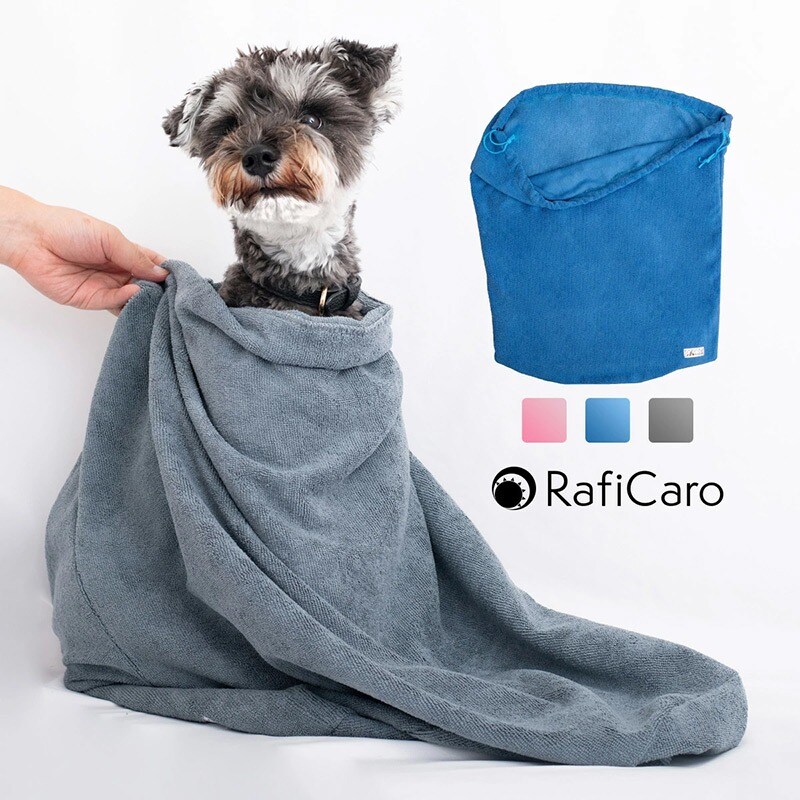 RafiCaro ペット用タオル すっぽり包める巾着型 小型~中型犬用 blue/ブルー
