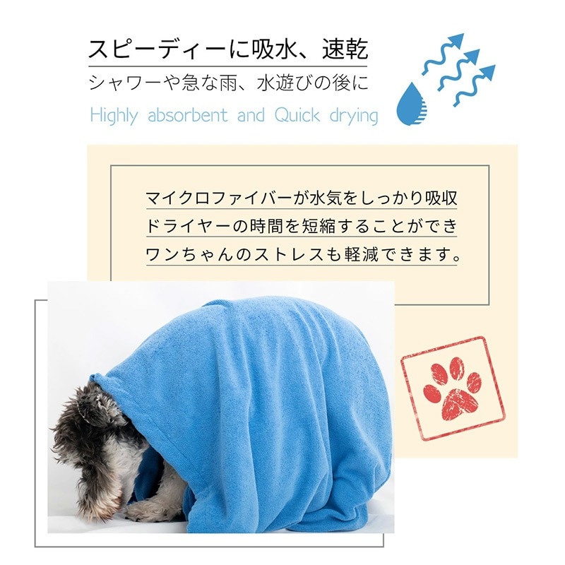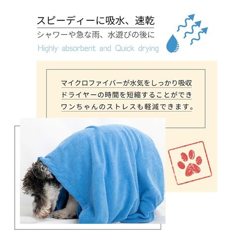 RafiCaro ペット用タオル すっぽり包める巾着型 小型~中型犬用 blue/ブルーのレビュー