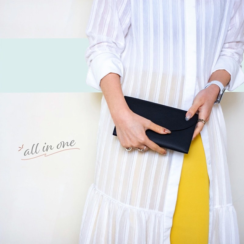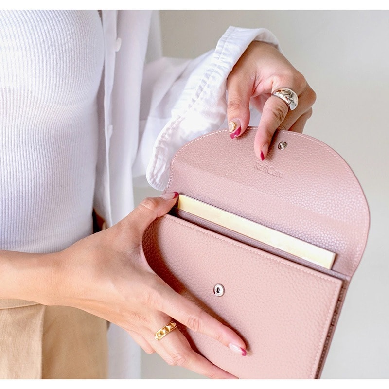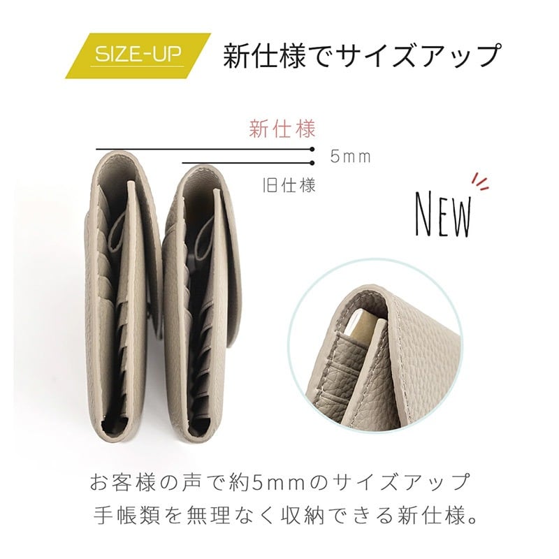 お客様のお声を受けて、縦横サイズを5mmずつ大きくしました。カードや手帳が取り出しやすく、さらに使いやすくなりました。