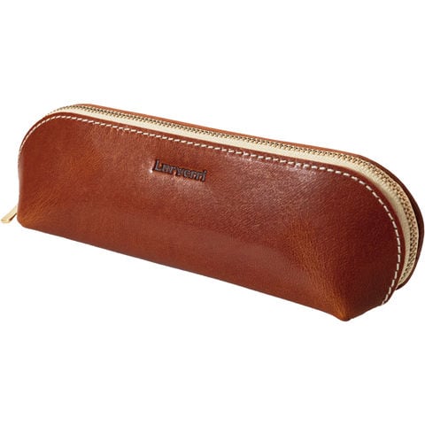 Lurverri 本革 ペンケース 約15本収納 オイルレザー YKKファスナー darkbrown/ダークブラウン