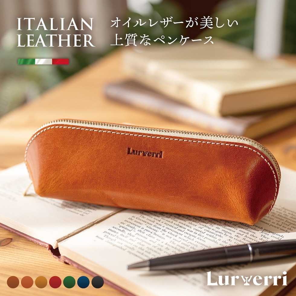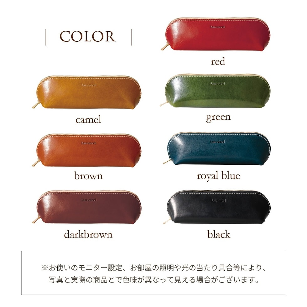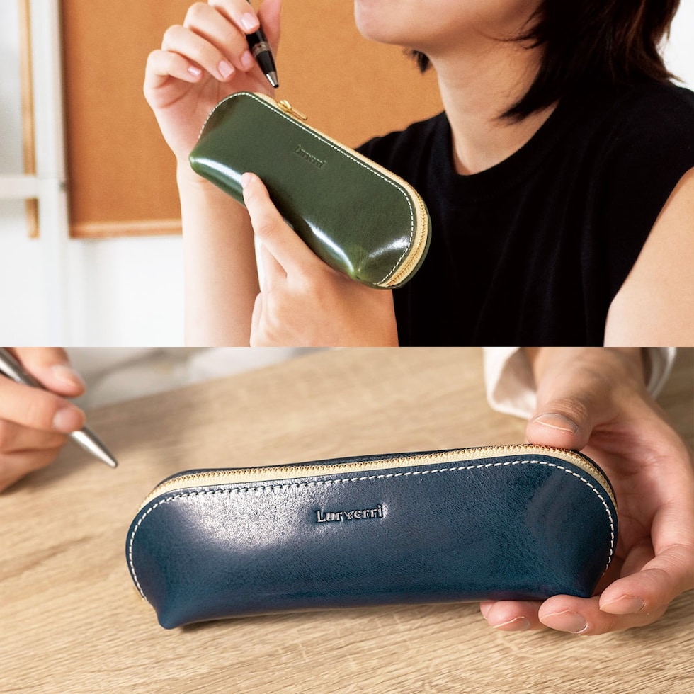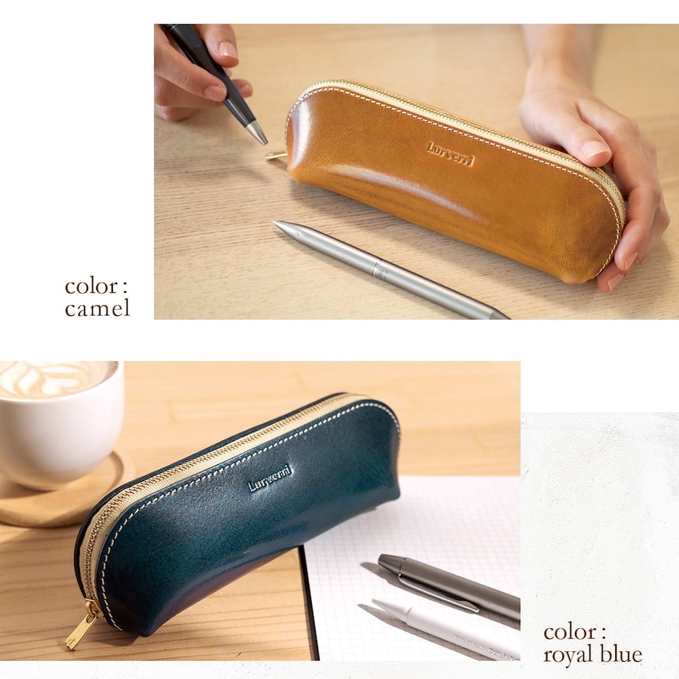 Lurverri 本革 ペンケース 約15本収納 オイルレザー YKKファスナー royalblue/ロイヤルブルー