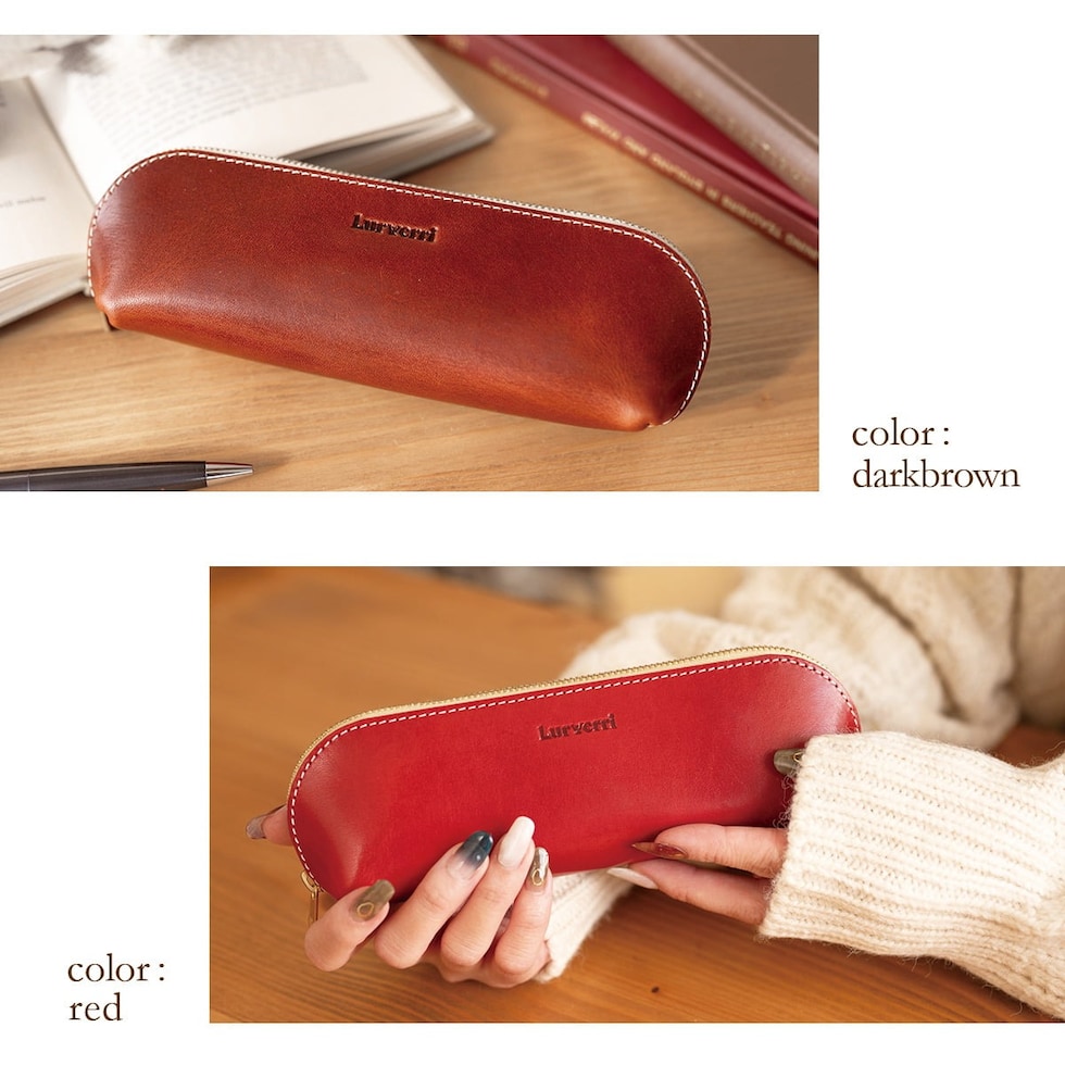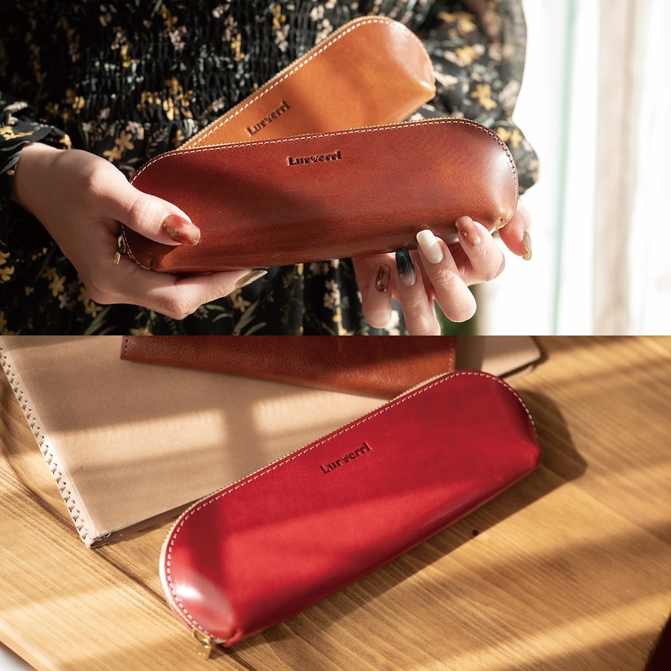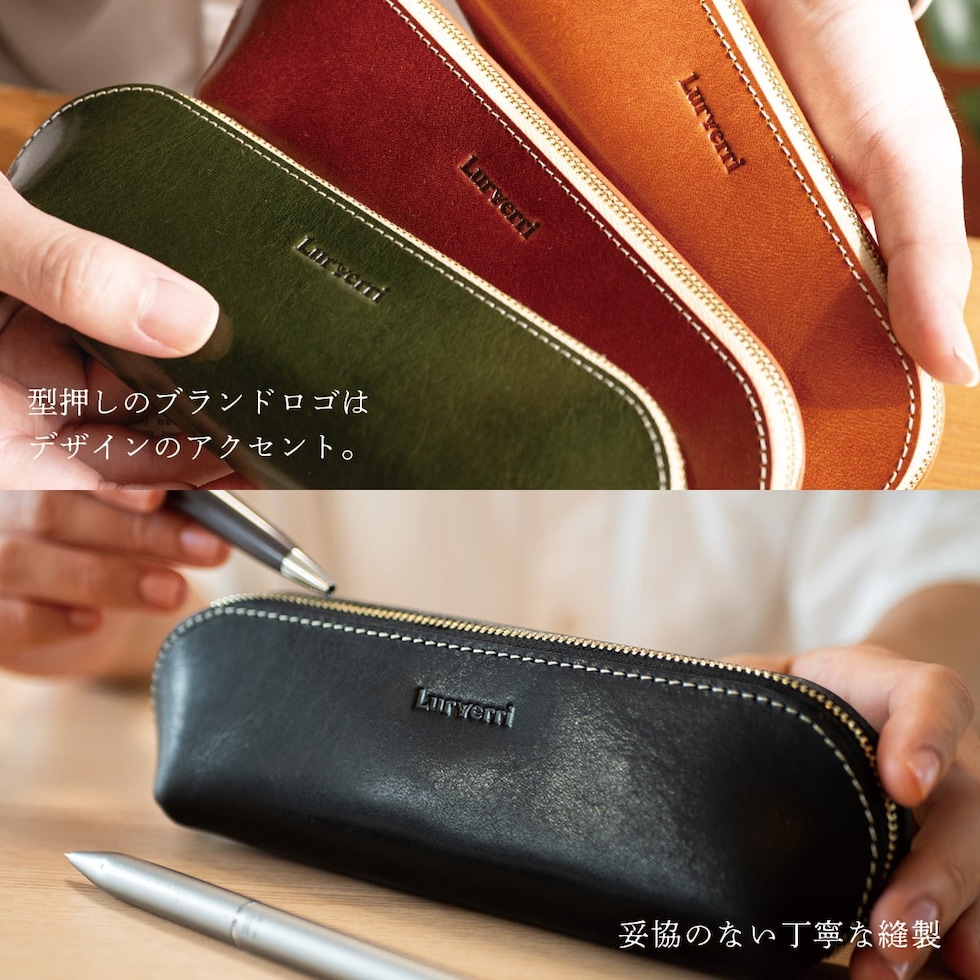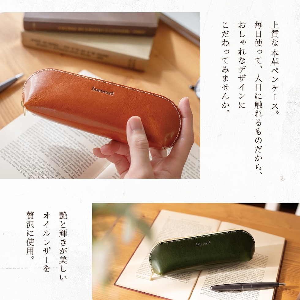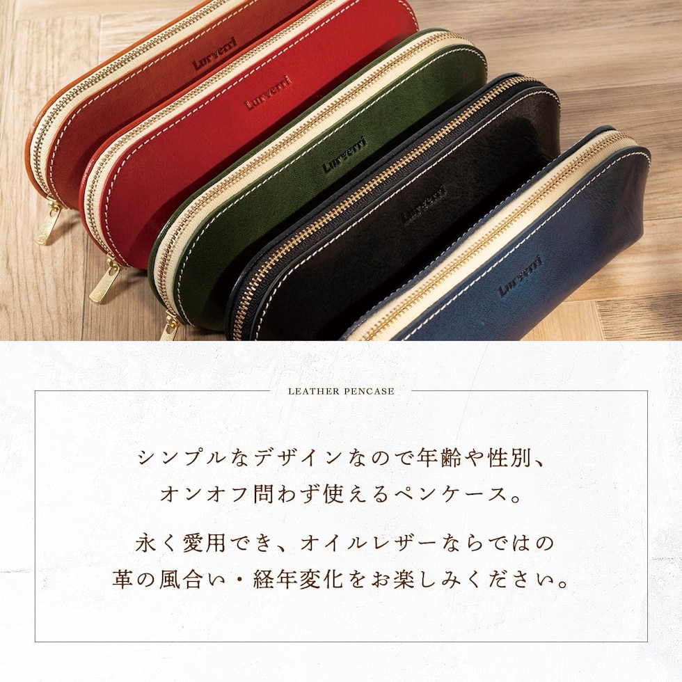 Lurverri 本革 ペンケース 約15本収納 オイルレザー YKKファスナー royalblue/ロイヤルブルー