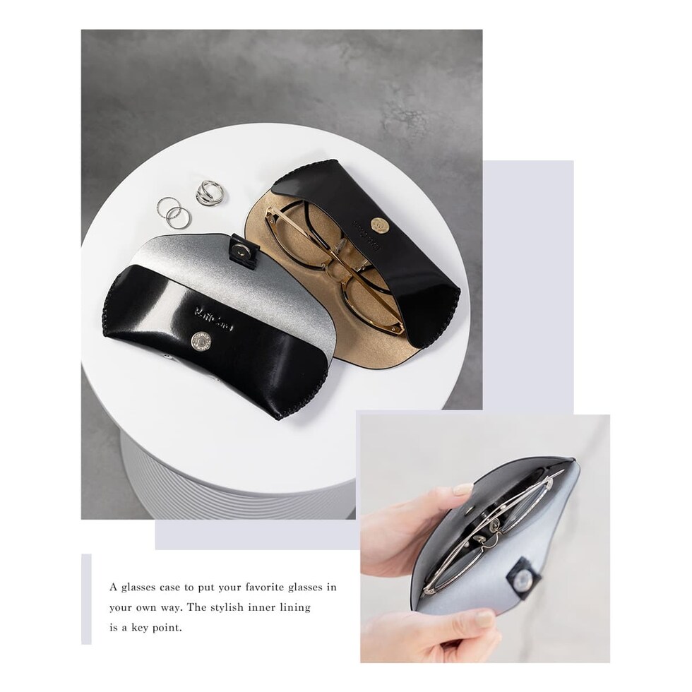 RafiCaro メガネケース 本革 牛革 簡単マグネットボタン 上品 blacksilver/ブラック×シルバー