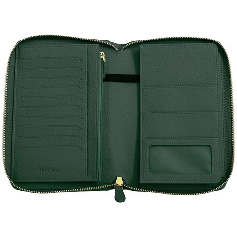 RafiCaro 大容量の本革おくすり手帳ケース B6サイズ ファスナータイプ green/グリーン
