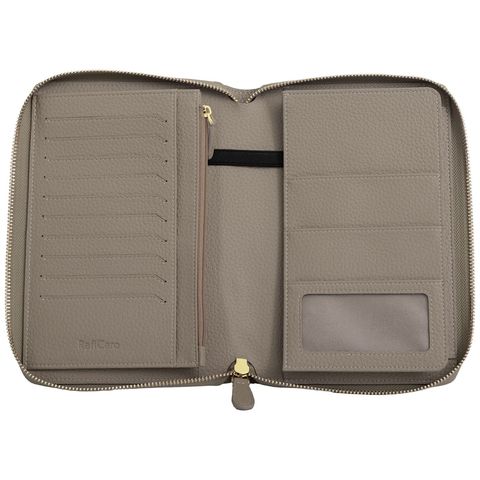 RafiCaro 大容量の本革おくすり手帳ケース B6サイズ ファスナータイプ greige/グレージュ