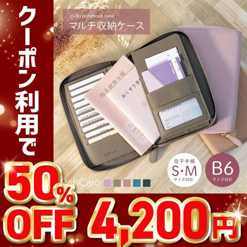 【50%OFFクーポン4,200円!】RafiCaro 大容量の本革おくすり手帳ケース B6サイズ ファスナータイプ lavender/ラベンダー