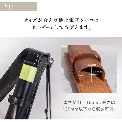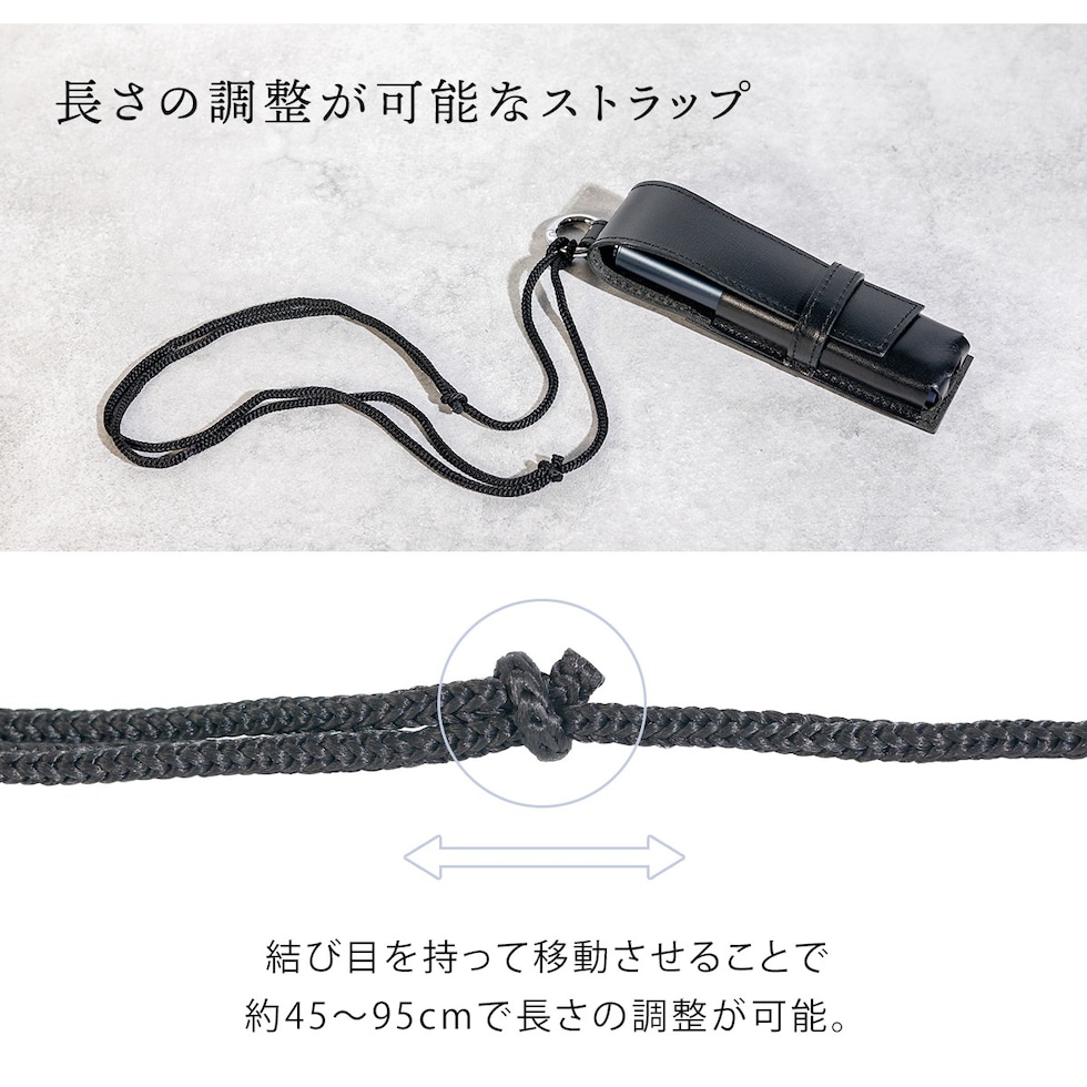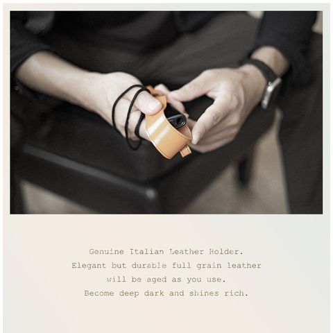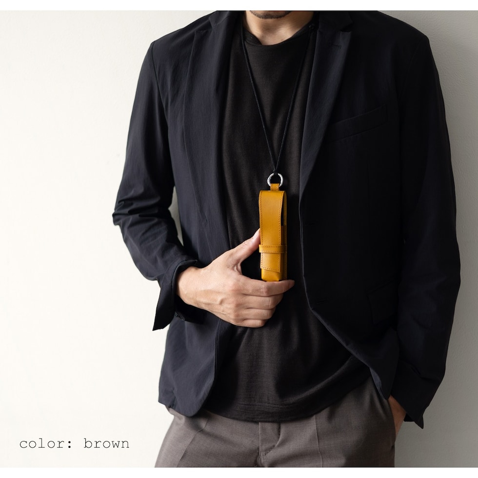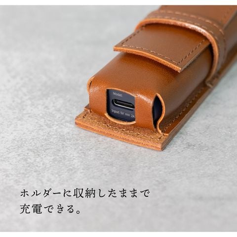 大切な本体を保護する本革製カバーです。ストラップで首掛けに、カラビナでバッグやベルトループに、お好みのスタイルで持ち歩き。使用時はもちろん、充電も装着したまま可能です。