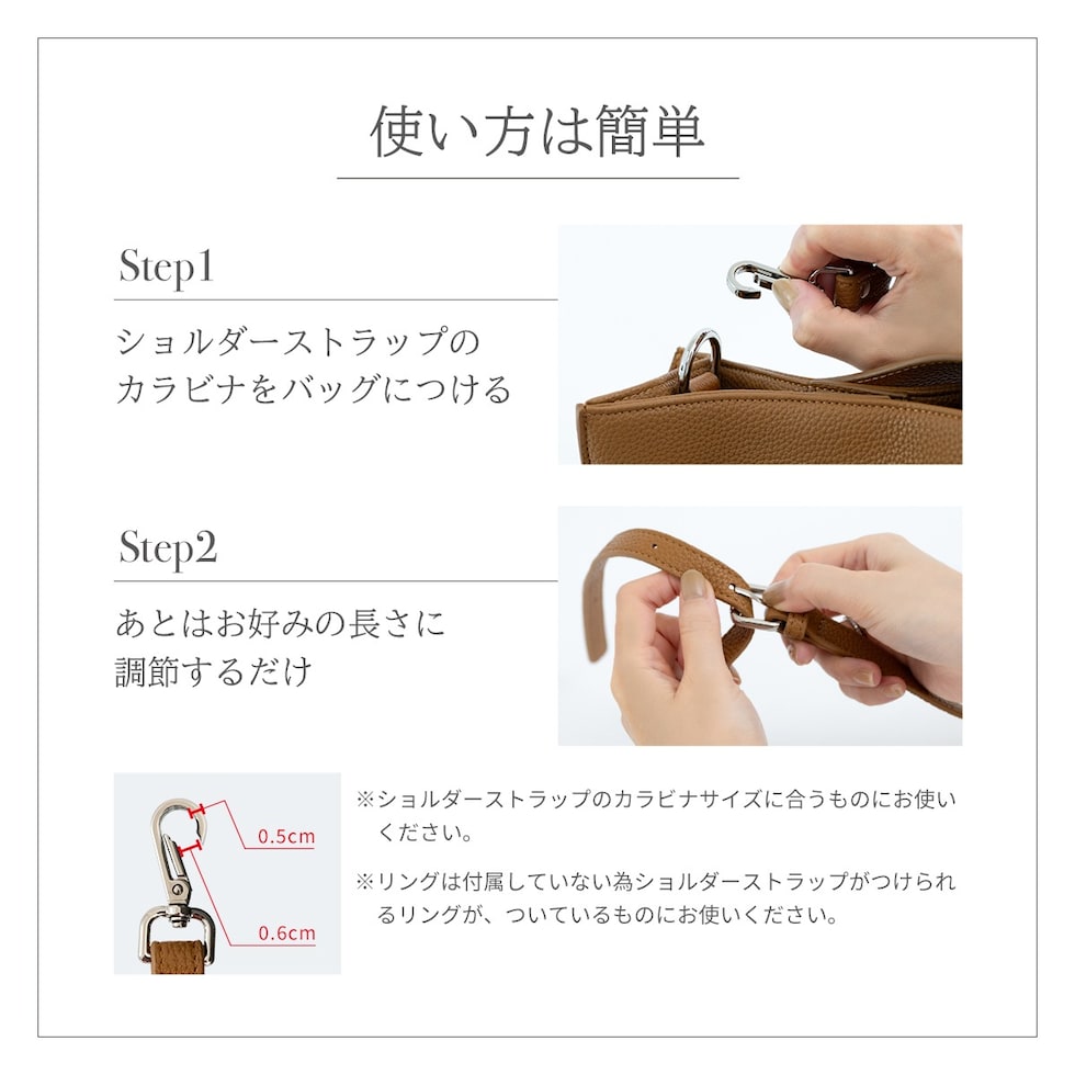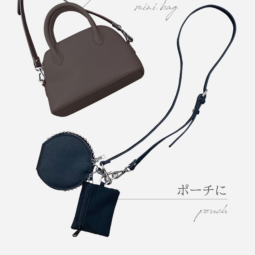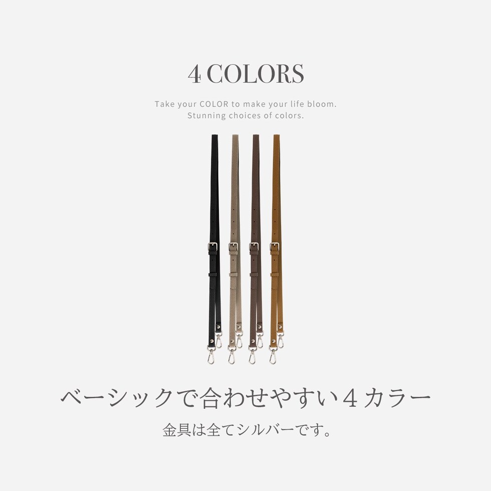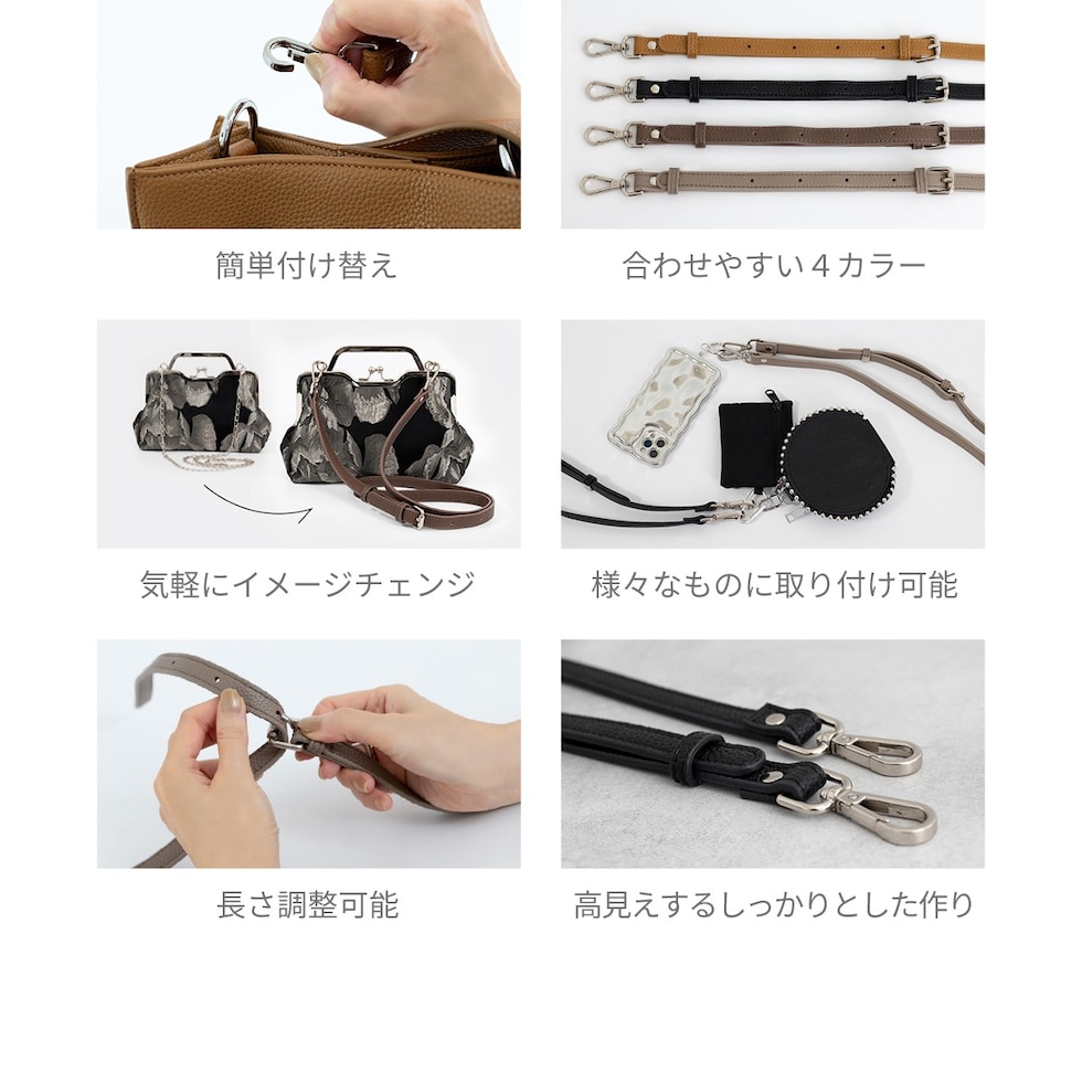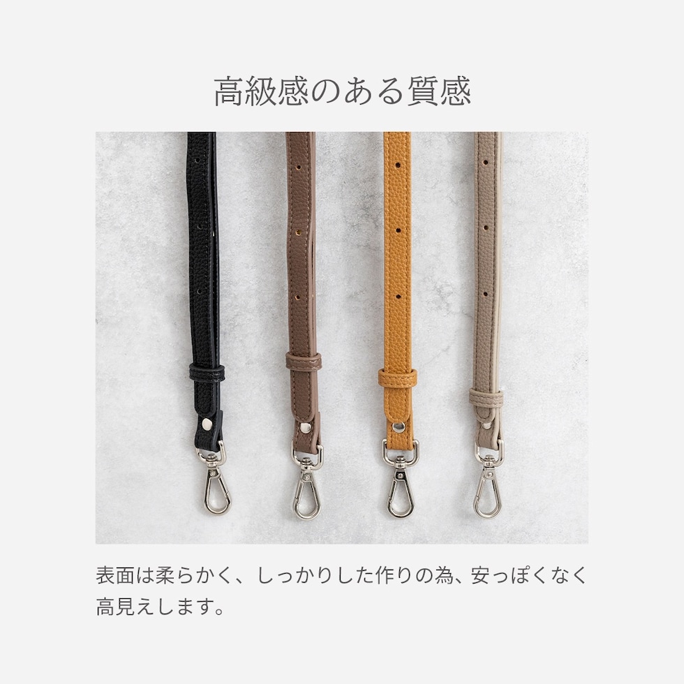 細目のシンプルなカバン用ストラップをミニバッグやポーチ、ハンドバッグなどお手持ちのバッグに。付け替え用、交換用として使用できます