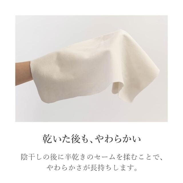 汚れた場合は中性洗剤で手洗いが可能です(洗濯機は使用できません)。水かぬるま湯ですすいで優しくしぼり、風通しのよいところで陰干ししてください。8割ほど乾いた状態で全体を揉むと柔らかさが長持ちします。
