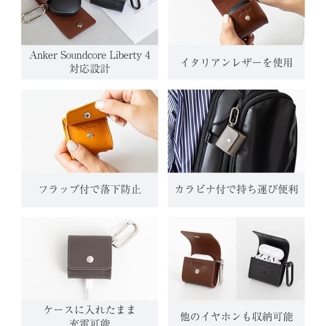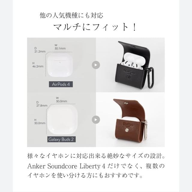 Dom Teporna Anker対応 イヤホンケース 本革 Anker Soundcore Liberty 4 対応 black/ブラック