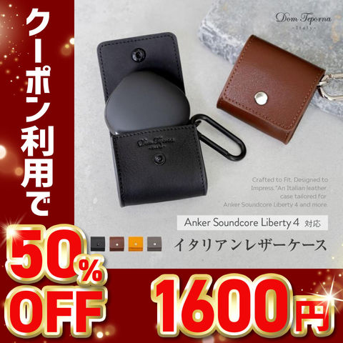 【50%OFFクーポン1,600円!】Dom Teporna Anker対応 イヤホンケース 本革 Anker Soundcore Liberty 4 対応 black/ブラック