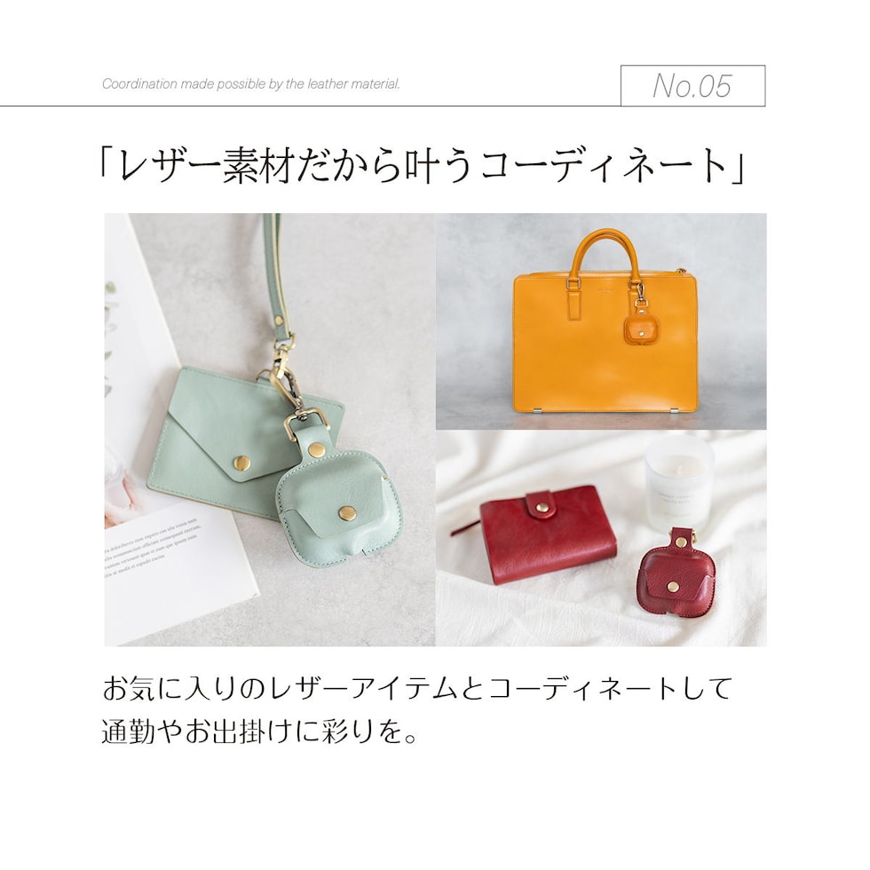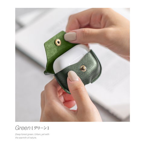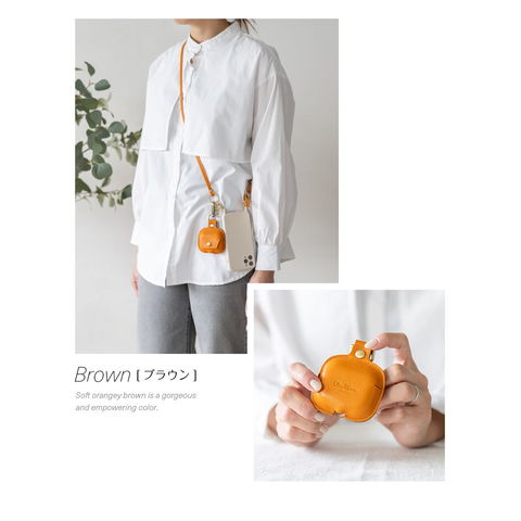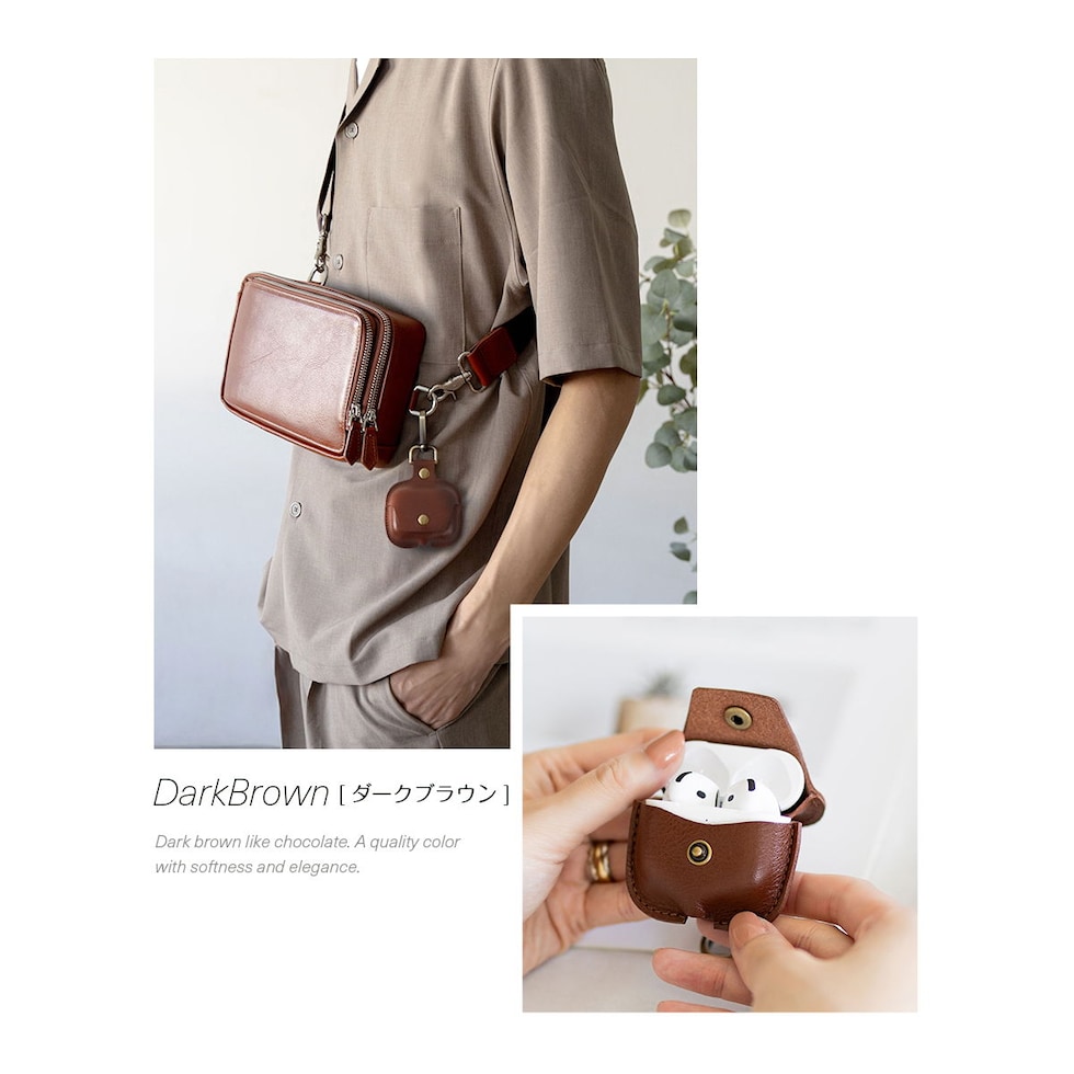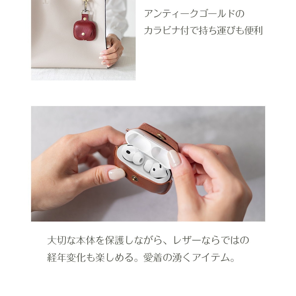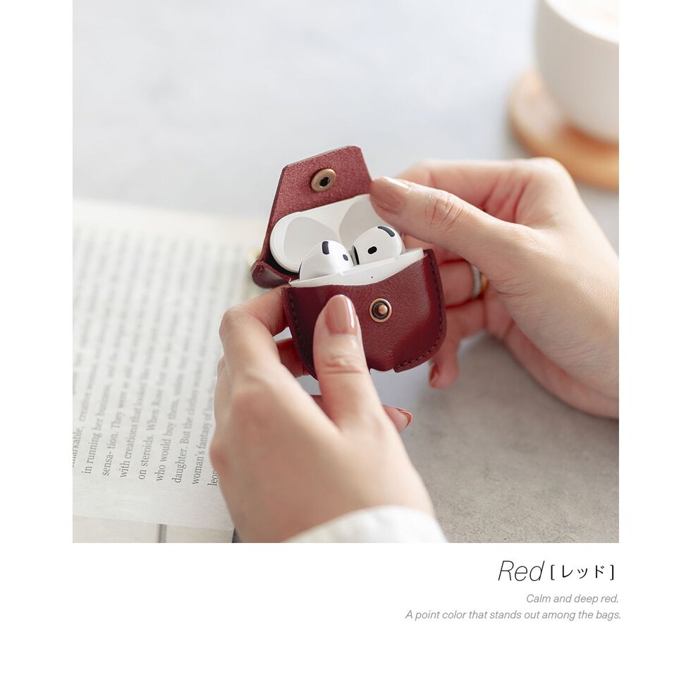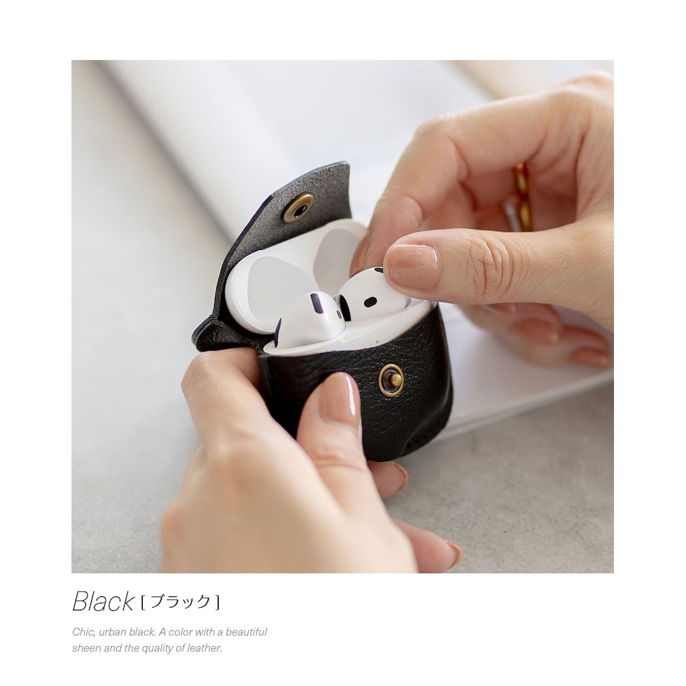 イヤホン充電ケースを傷から守る本革製カバーです。レザーケース本体とフタ部分は一体型。しっかりボタン留めもできるので、不意に開いてしまう心配がありません。底面の充電用ホールで装着したまま充電が可能です。