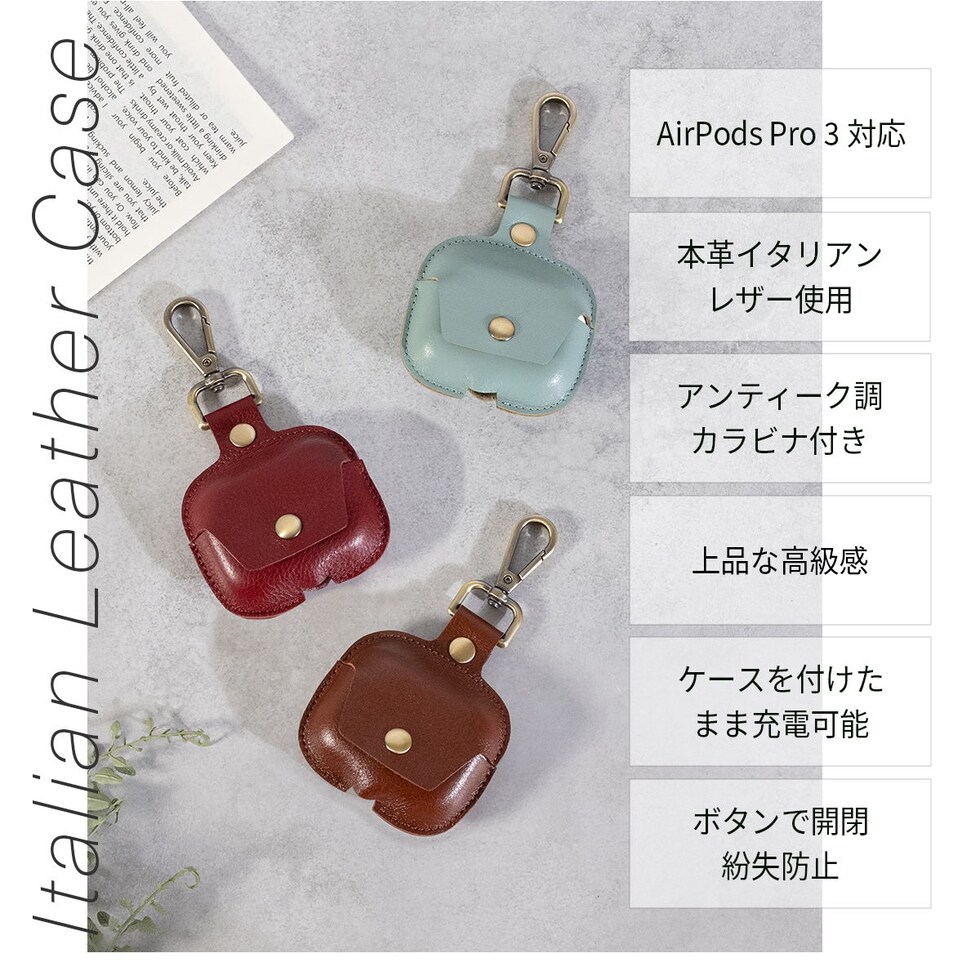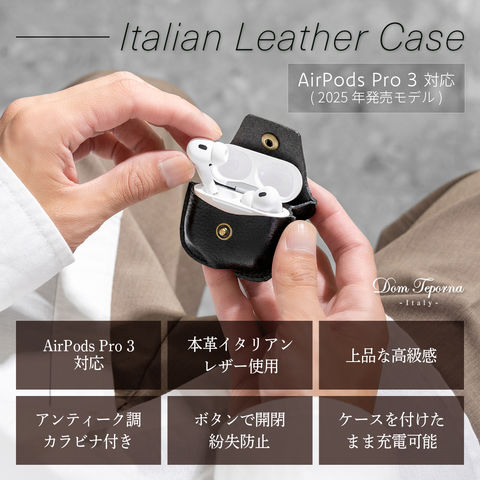 【1/21まで!ポイント15倍】Dom Teporna AirPodsPro3対応ホルダー 本革 カラビナ付き イタリアンレザー AirPodsプロ3 保護ケース 革 エアーポッズプロ対応カバー AirPods ケース シリーズ カバー シンプル brown/ブラウン
