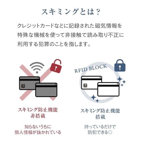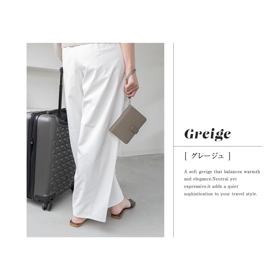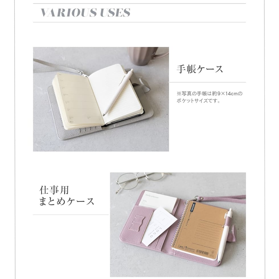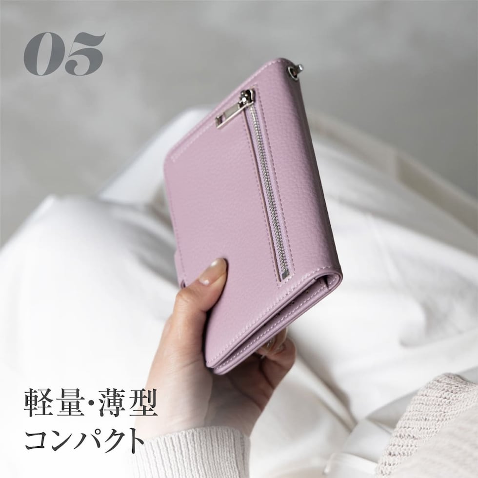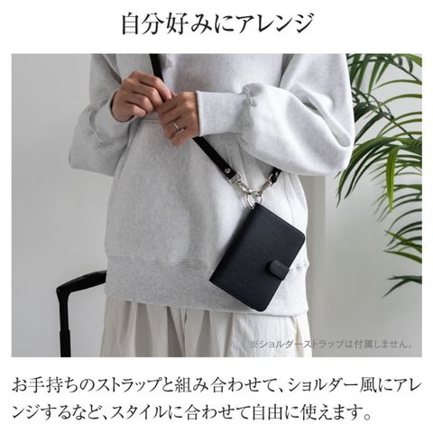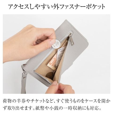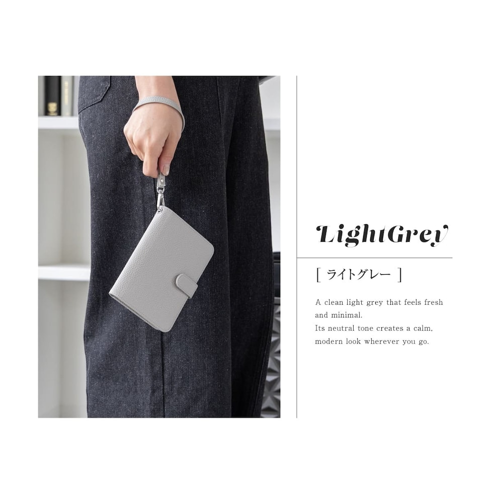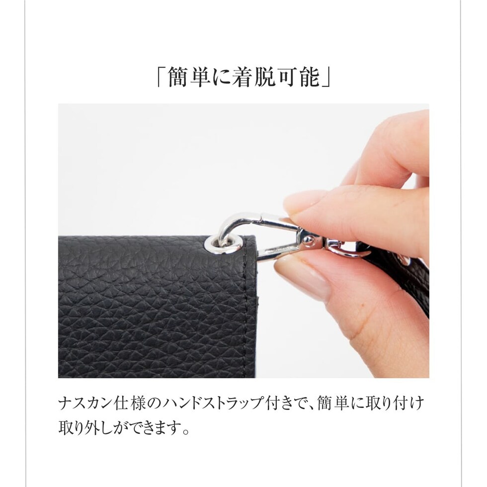 水気に強くお手入れ簡単なPUレザー+スキミング防止素材で中身をしっかり守ります。ハンドストラップ、ペンホルダー、マチ付きで大きく開くファスナーポケットなど、あったら嬉しい機能を詰め込みました。