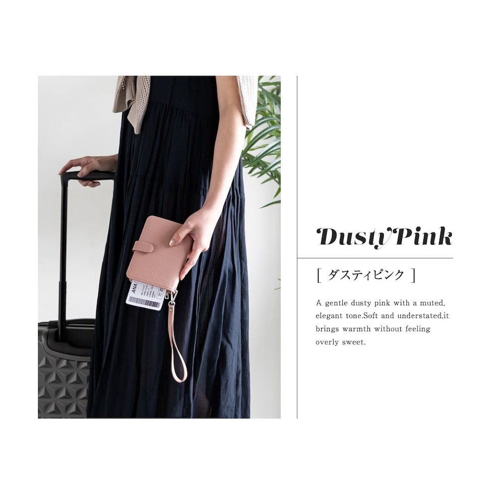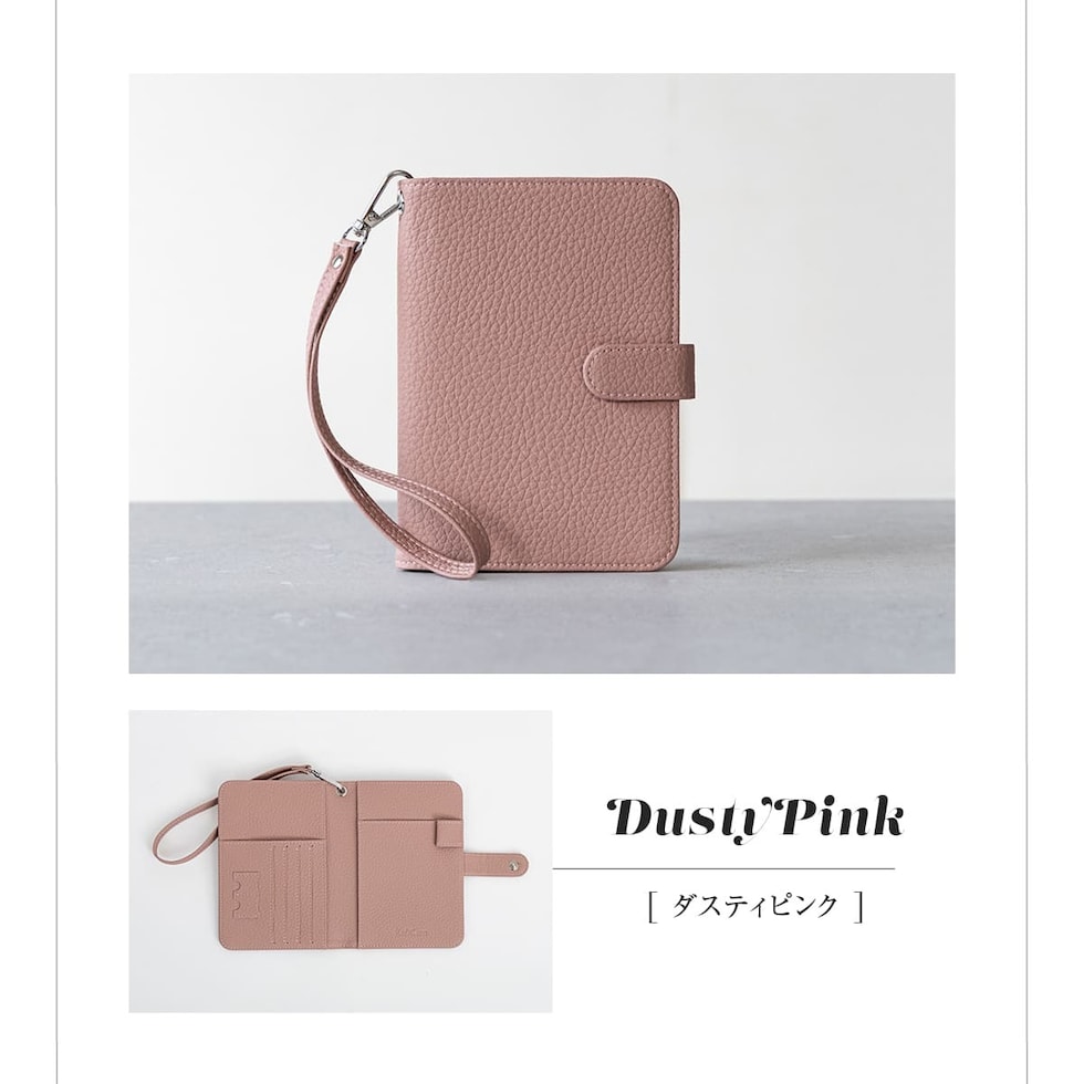 RafiCaro パスポートケース スキミング防止機能付き カード収納4枚 SIMカードポケット ペンホルダー ファスナーポケット 小銭入れ ストラップ付き フェイクレザー 大容量 ポケットサイズ手帳カバー dustypink/ダスティピンク
