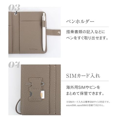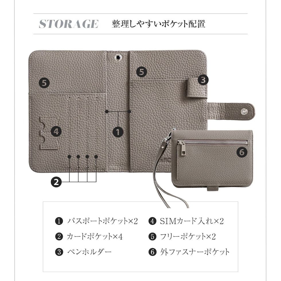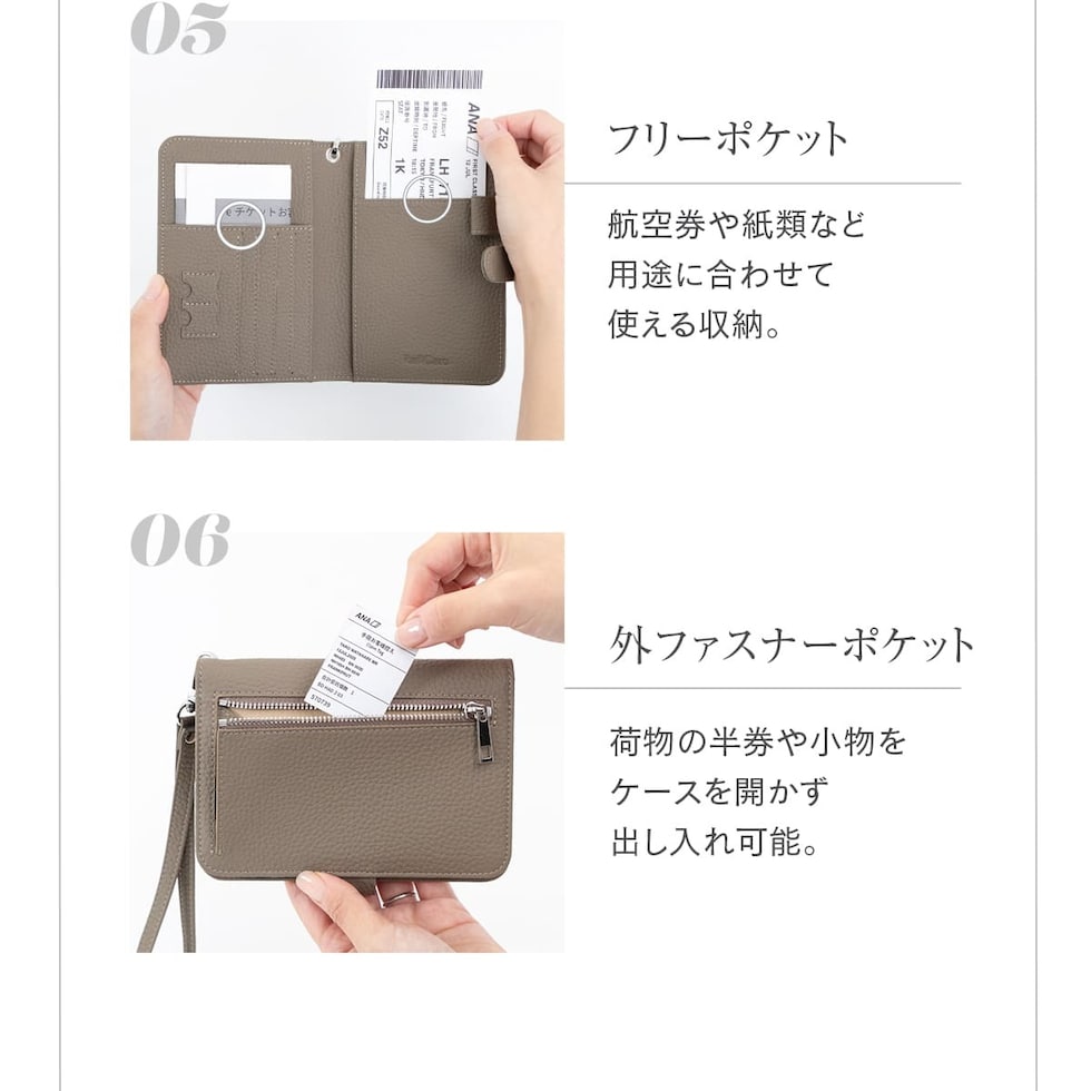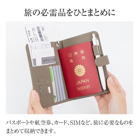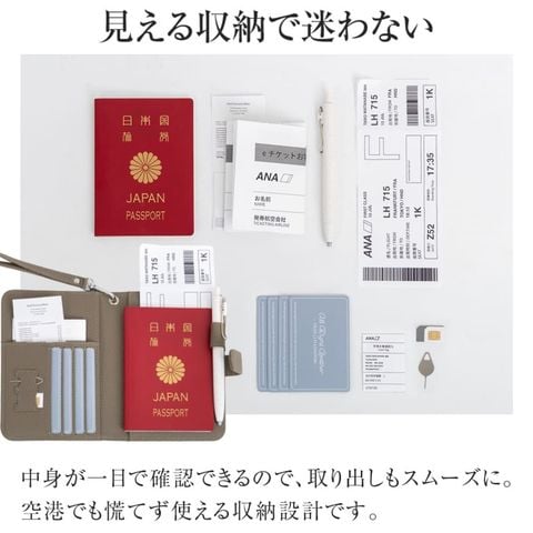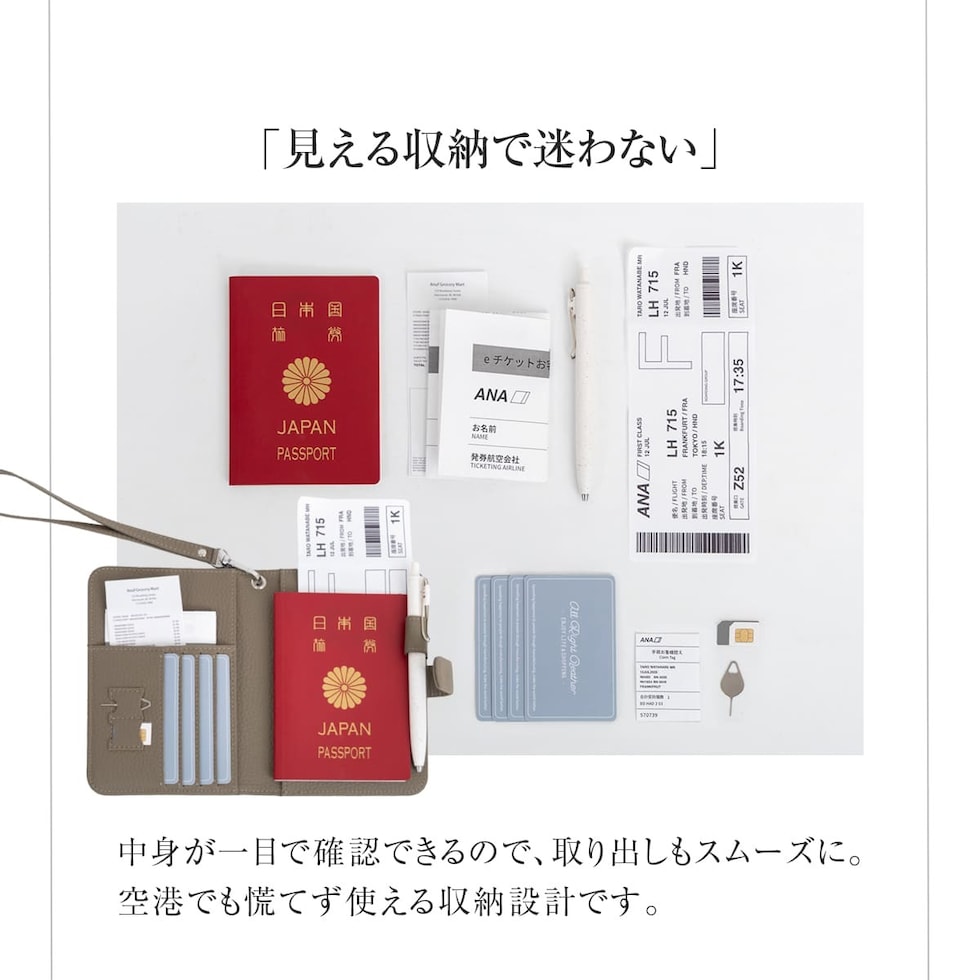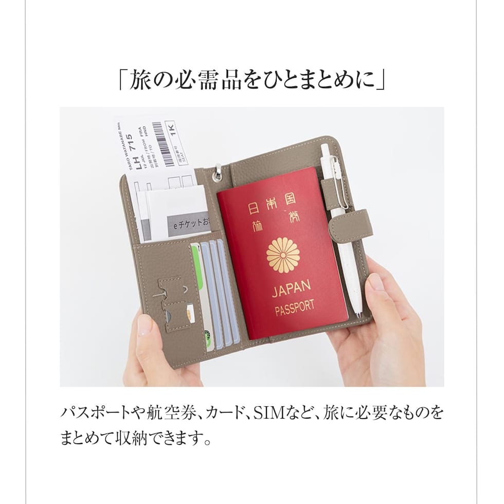 旅の必需品を整理して持ち運べるマルチケースです。パスポートとチケットはもちろん、カードに小銭、SIMカードまで。入れるだけで自然と整頓できる多収納。緊急用のサブウォレットにもおすすめです。