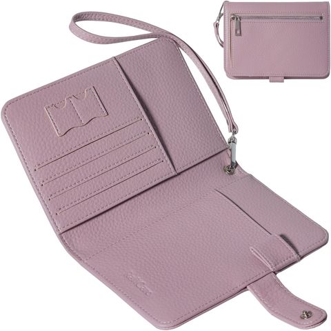 水気に強くお手入れ簡単なPUレザー+スキミング防止素材で中身をしっかり守ります。ハンドストラップ、ペンホルダー、マチ付きで大きく開くファスナーポケットなど、あったら嬉しい機能を詰め込みました。