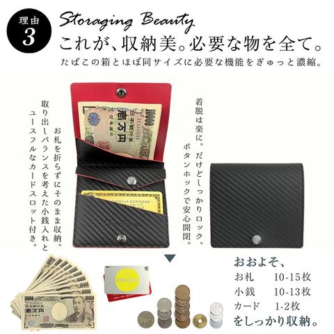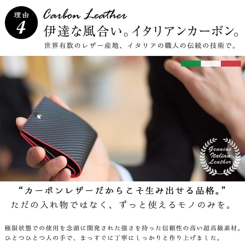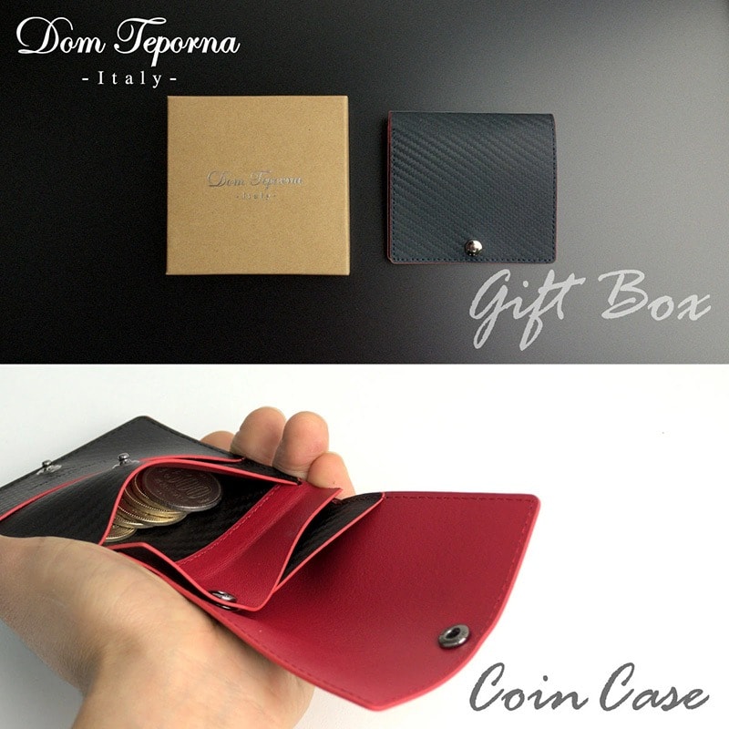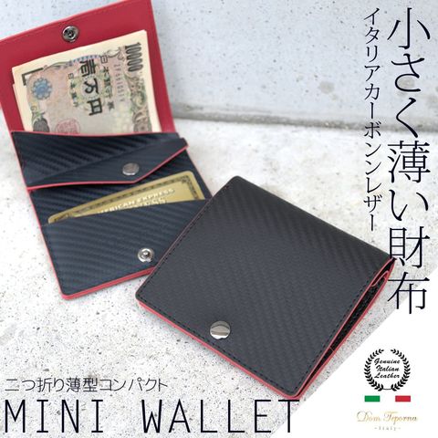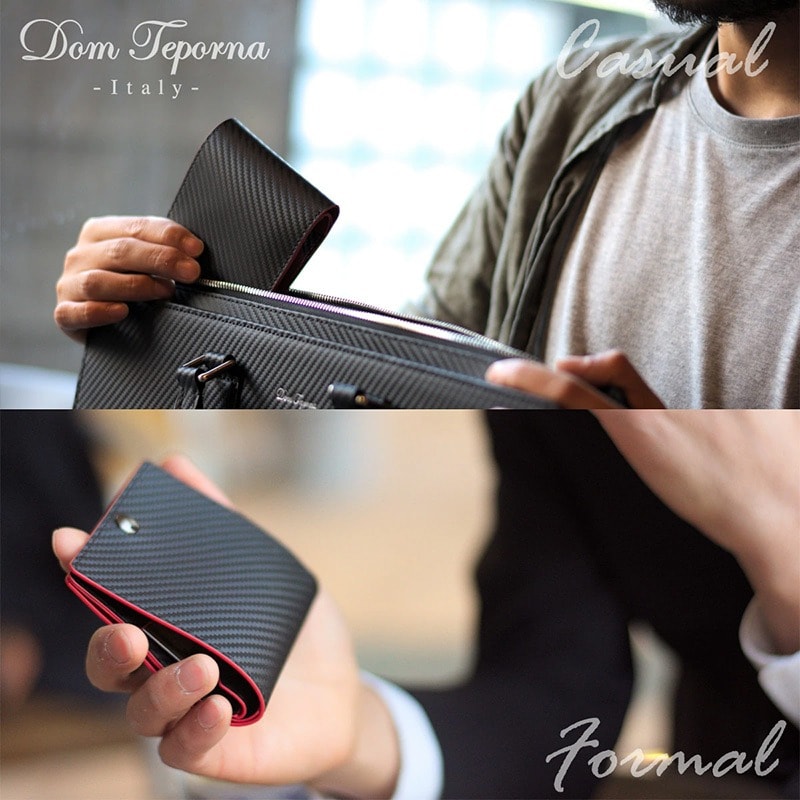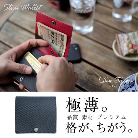 Dom Teporna カーボンレザーの二つ折り財布 薄型で折らずにお札、小銭、カードが入る black/ブラック