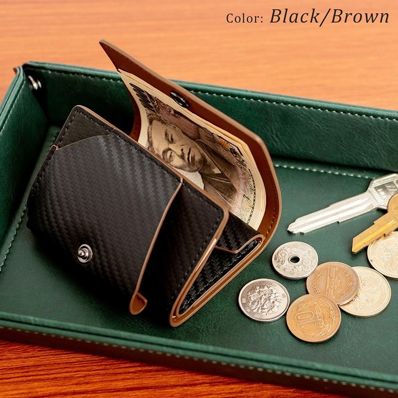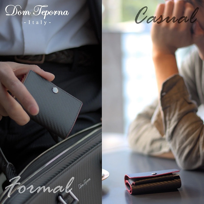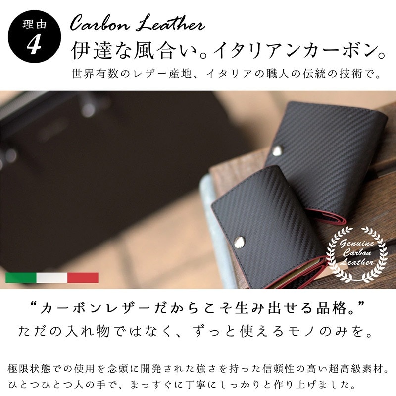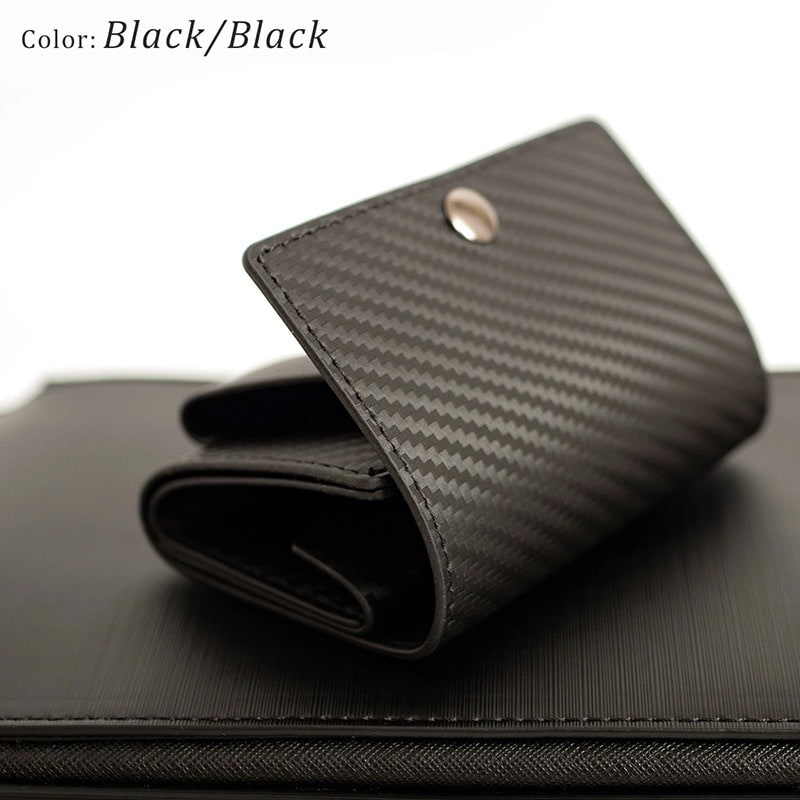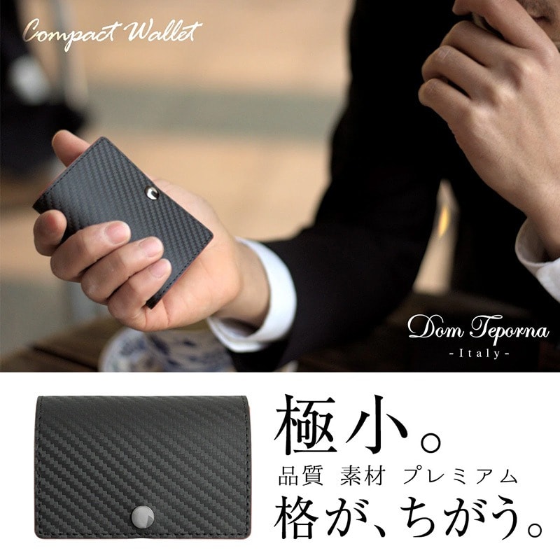 Dom Teporna Italy カーボンレザーの三つ折り財布 折らずにお札、小銭、カードが入る black/ブラック
