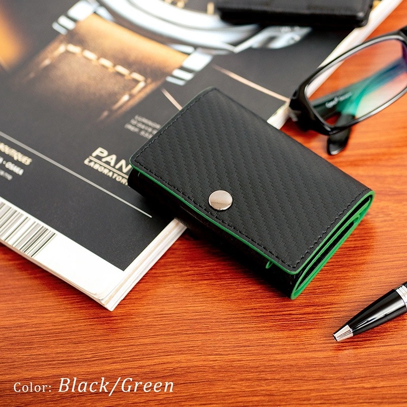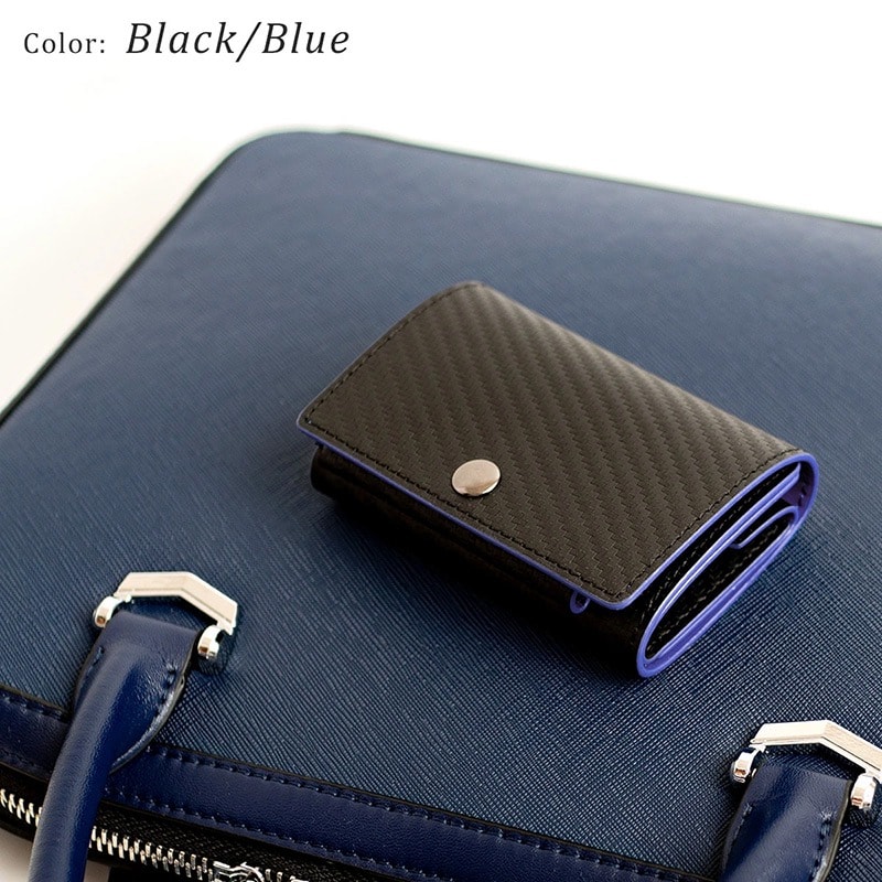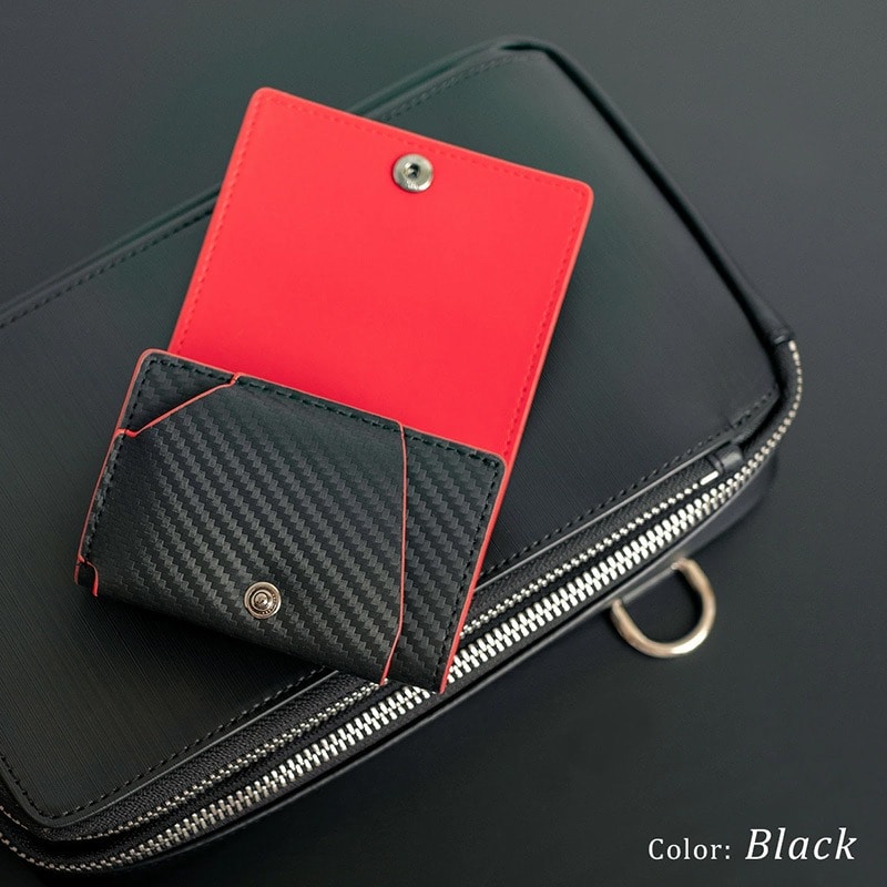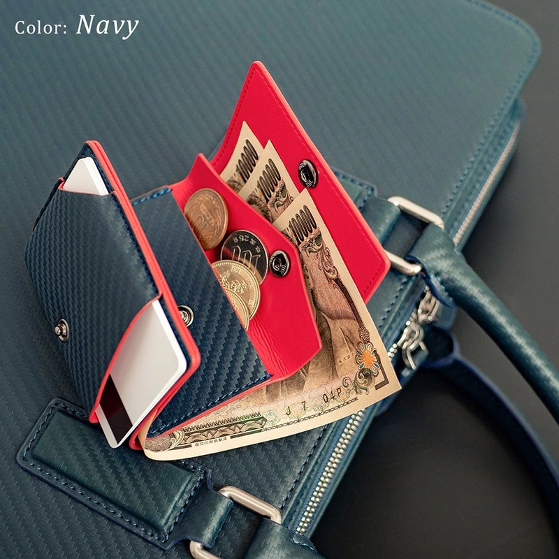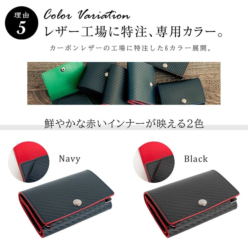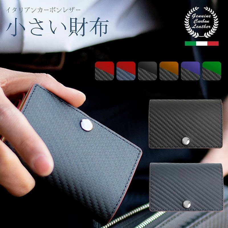Dom Teporna Italy カーボンレザーの三つ折り財布 折らずにお札、小銭、カードが入る black/ブラック