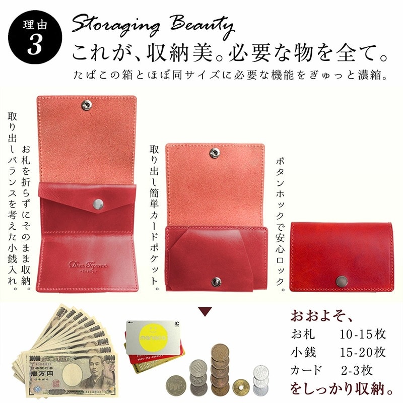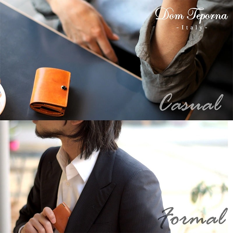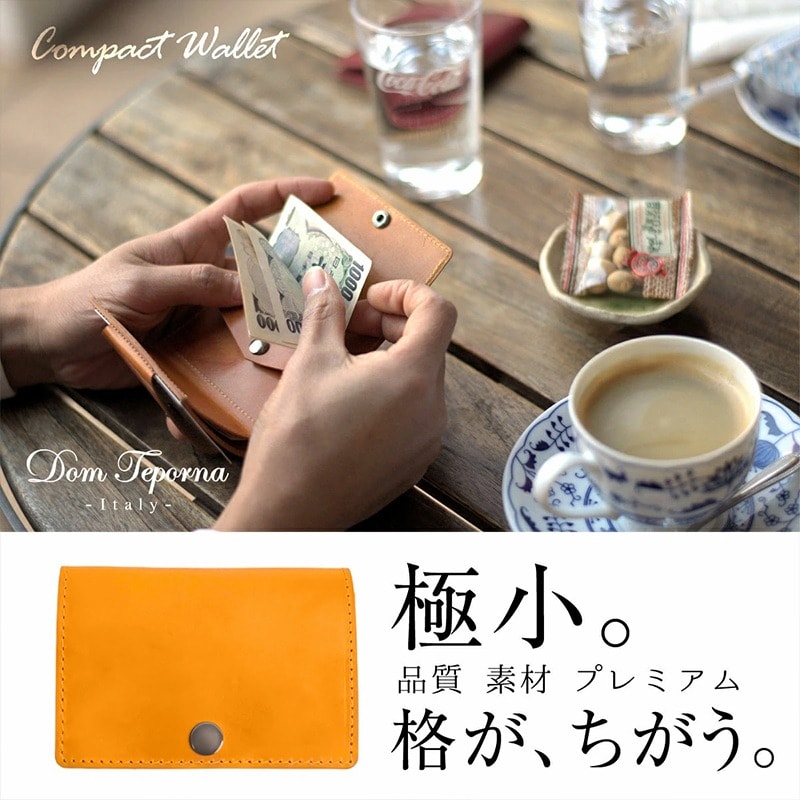 Dom Teporna Italy イタリアンレザーの三つ折り財布 折らずにお札、小銭、カードが入る glossgreen/グロスグリーン