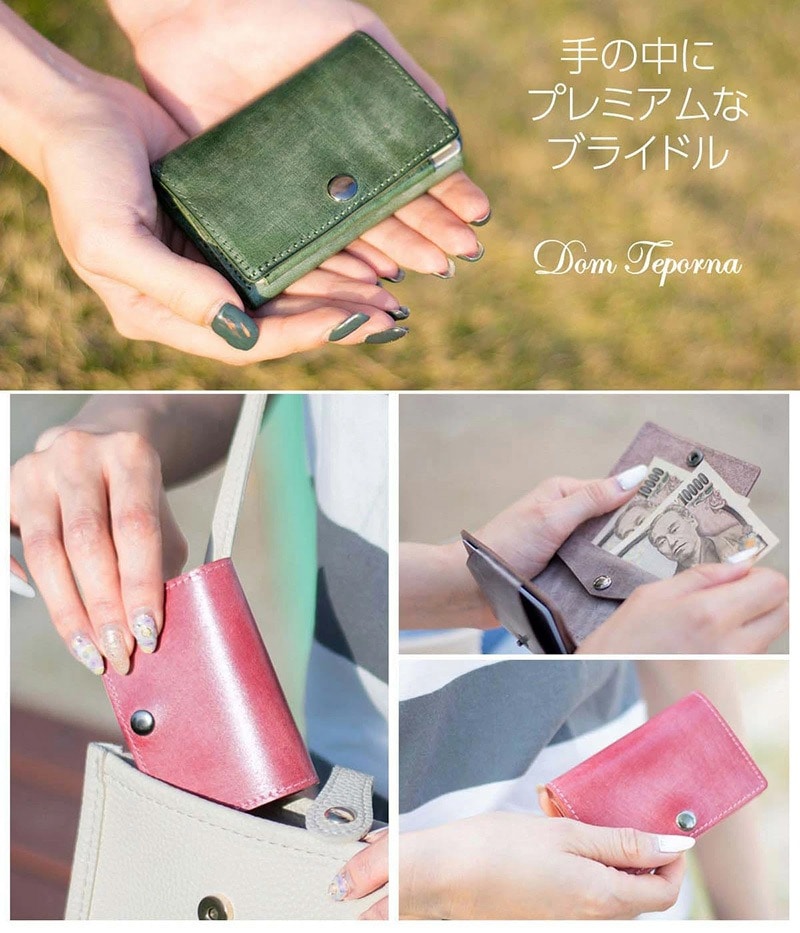 Dom Teporna Italy ブライドルレザーの三つ折り財布 変化を楽しむ本革 折らずにお札、小銭、カードが入る darkbrown/ダークブラウン