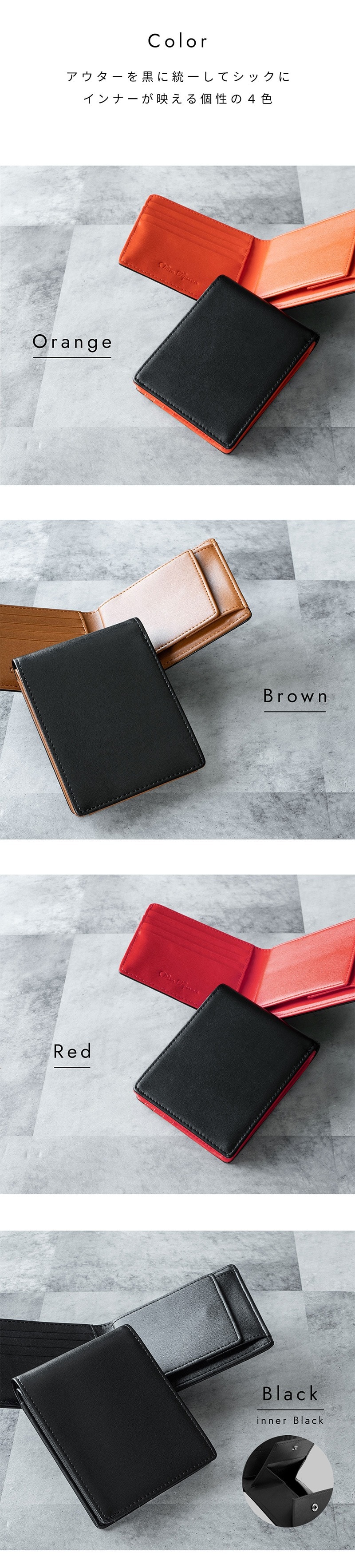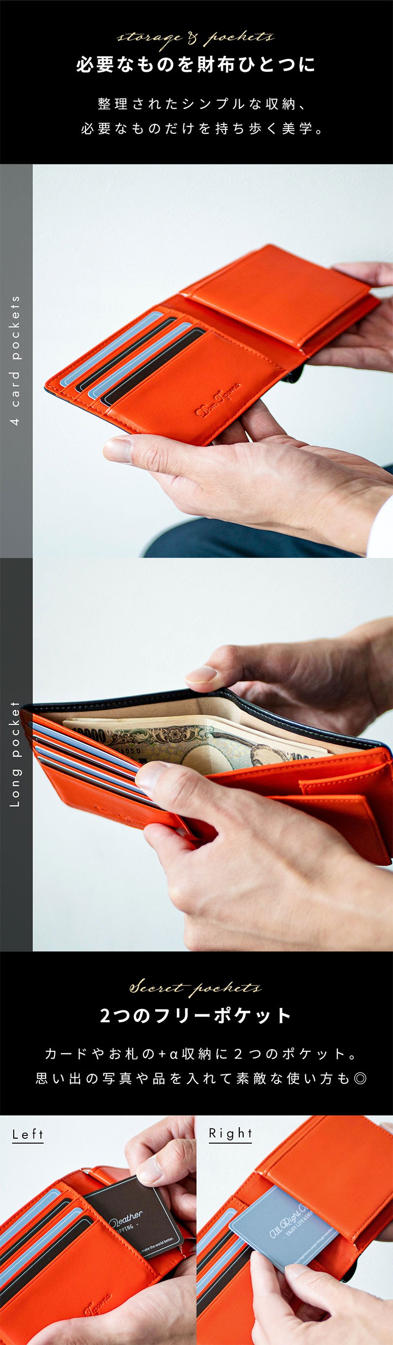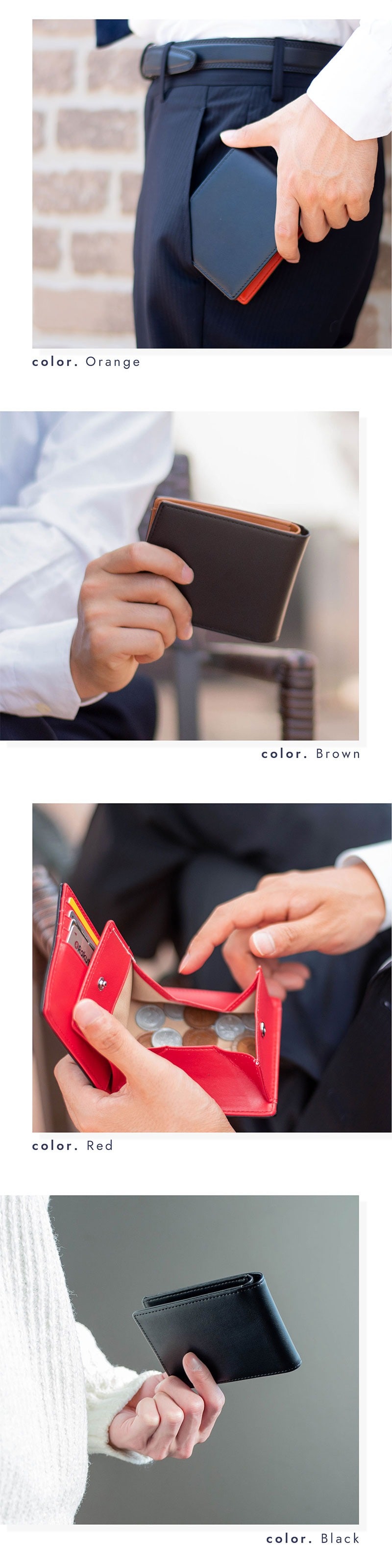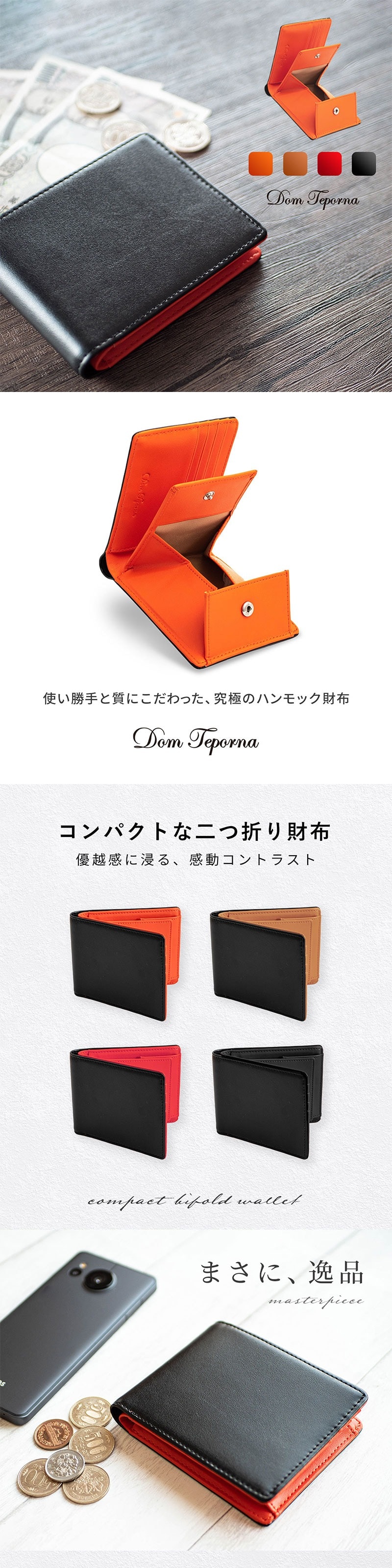 【12月10日限定ポイント30倍】Dom Teporna 小銭が見やすい二つ折り財布 本革 ボックス型小銭入れ orange/オレンジ