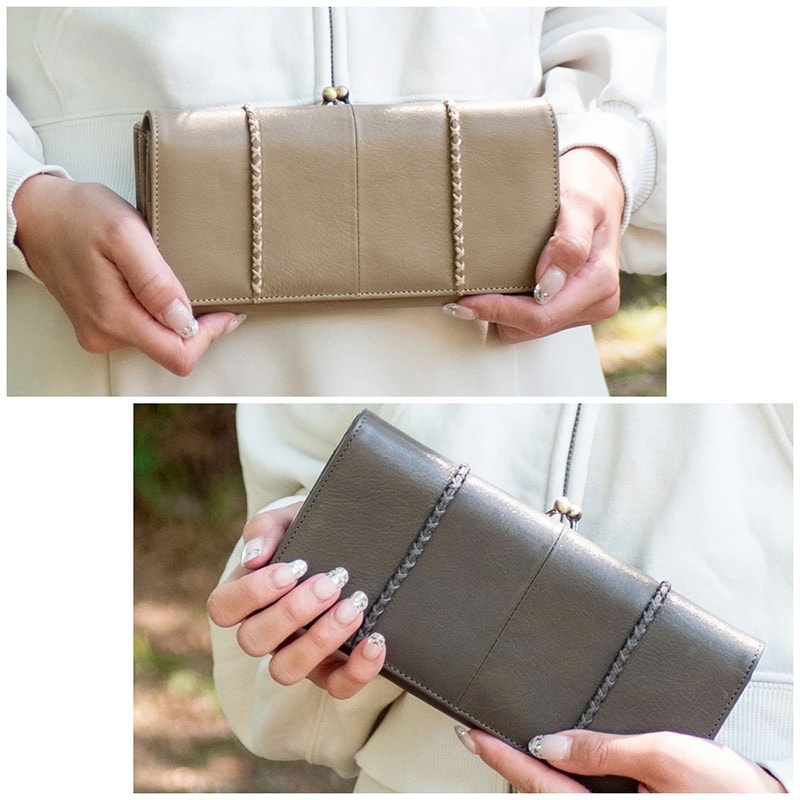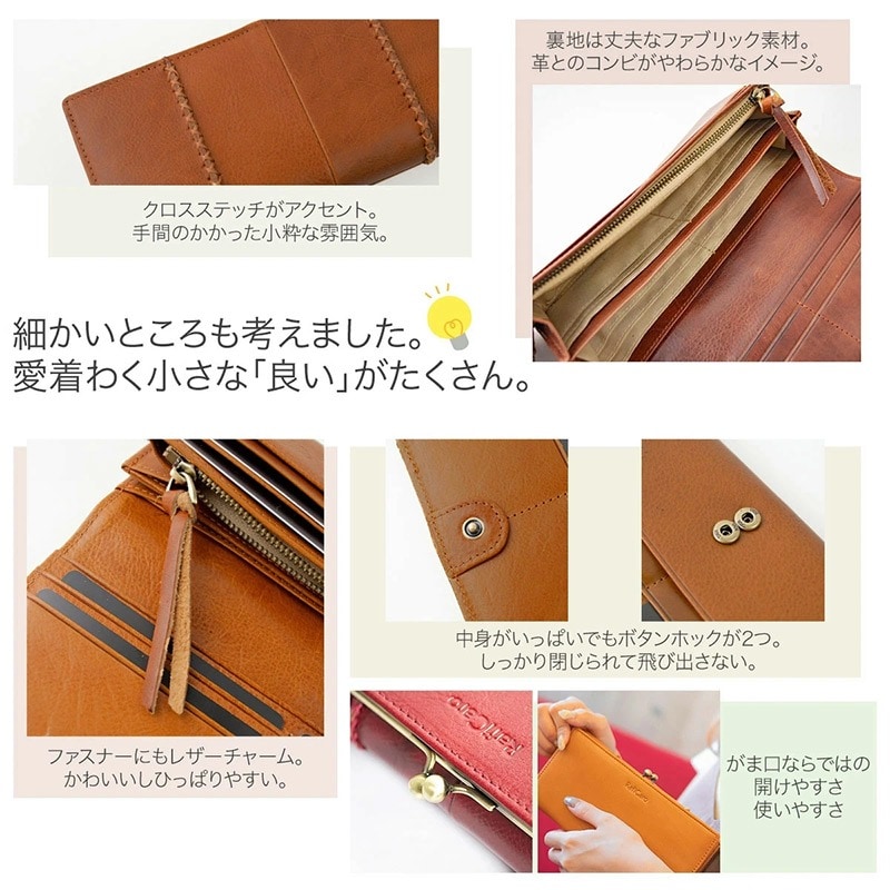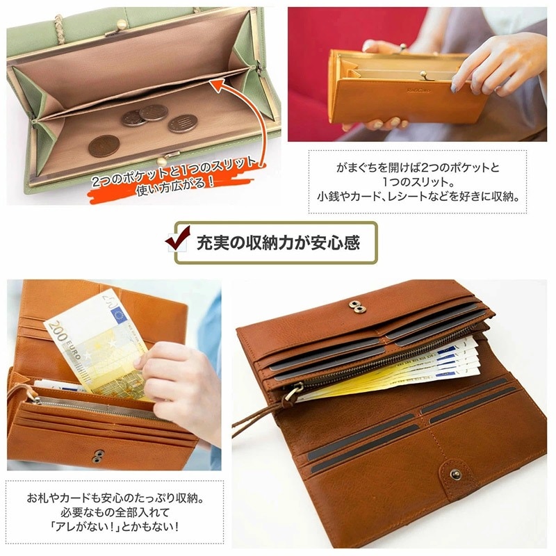 開くのが楽しくなる、人気のがまぐちタイプの小銭入れを採用したレディースロングウォレット。