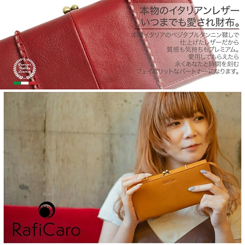 RafiCaro 大容量本革がま口長財布 イタリアンレザー カード収納×20 red/レッド