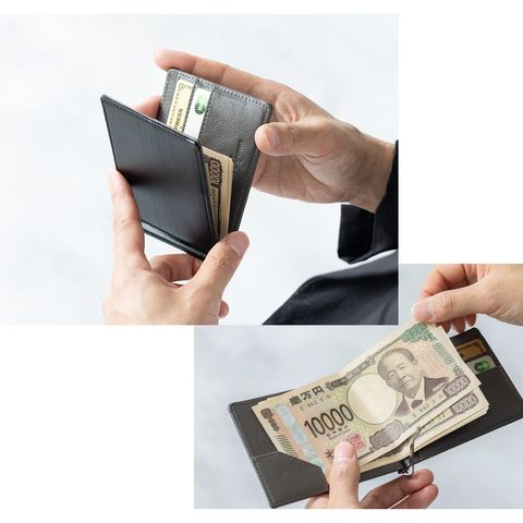 スーツスタイルには、極限まで薄さを追求したマネークリップがベスト。