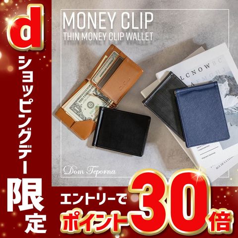 【12月10日限定ポイント30倍】Dom Teporna 本革薄型マネークリップ カード収納×2 イタリアンレザー black/ブラック