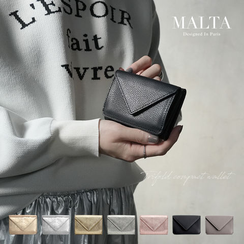 【12月10日限定ポイント30倍】MALTA 三つ折り財布 牛革 てのひらサイズのミニ財布 black/ブラック