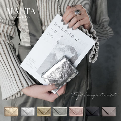 【12月10日限定ポイント30倍】MALTA 三つ折り財布 牛革 てのひらサイズのミニ財布 silver/シルバー