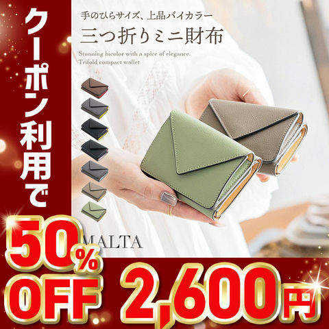 【限定50%OFFクーポン】【5,200円→2,600円】MALTA 牛革三つ折り財布 レター型 ツートンカラー olive/オリーブ