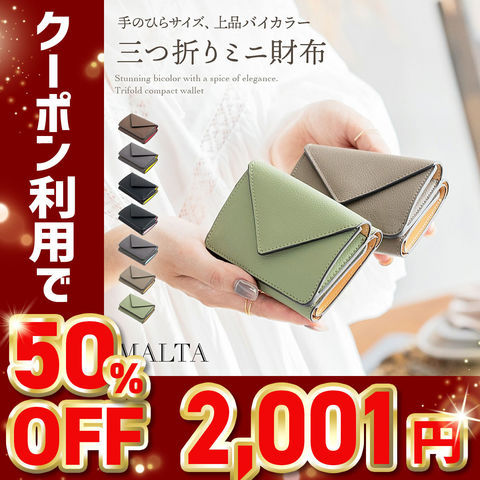 【50%OFFクーポン2,001円!】MALTA 牛革三つ折り財布 レター型 ツートンカラー olive/オリーブ