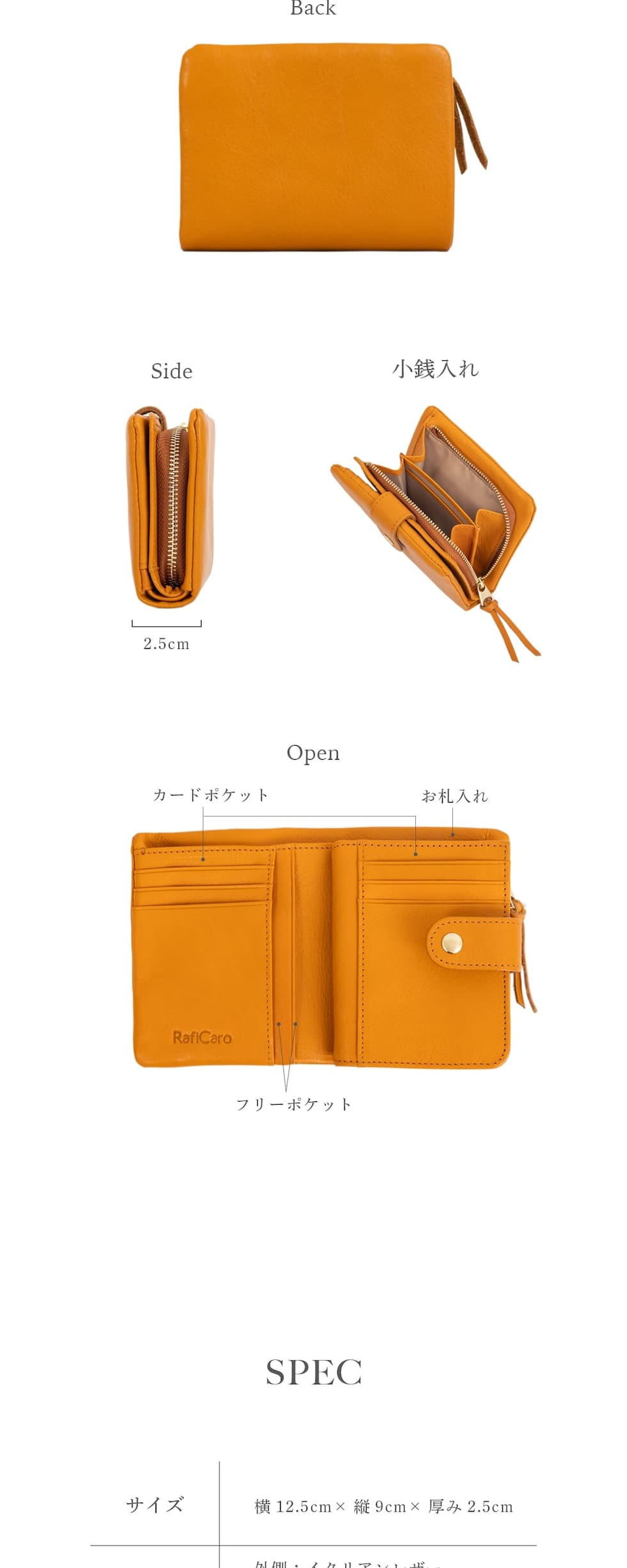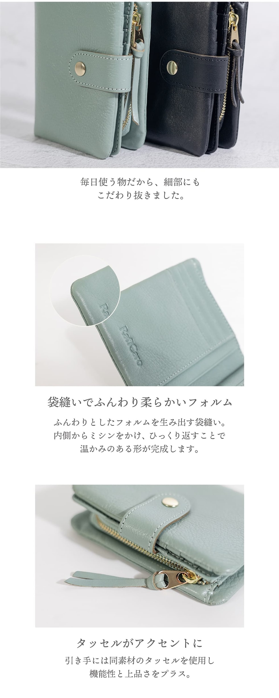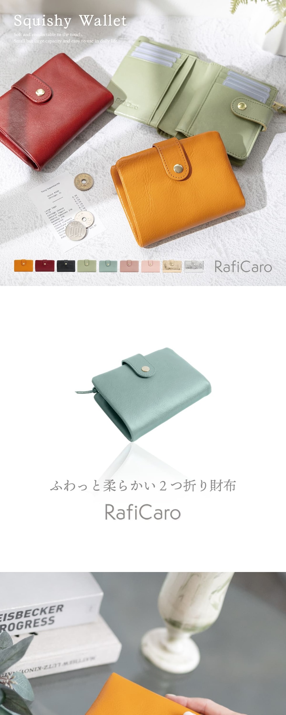 RafiCaro やわらかレザーの本革二つ折り財布 イタリアンレザー dustyblue/ダスティブルー