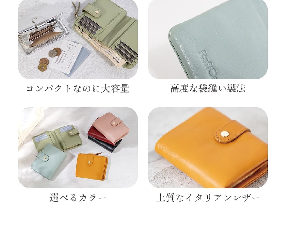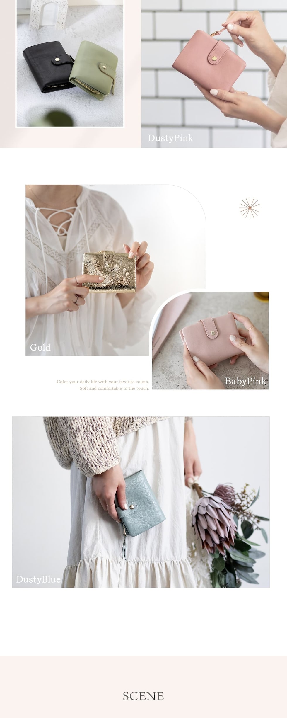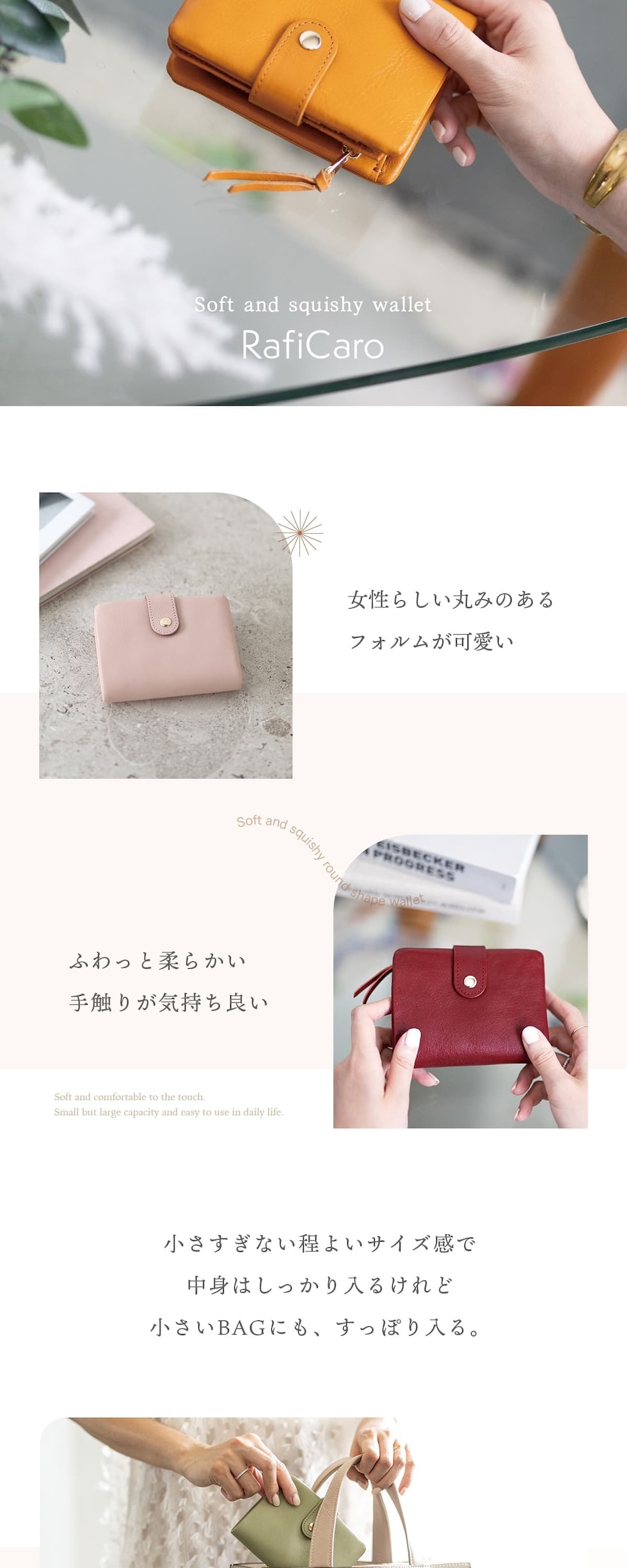RafiCaro やわらかレザーの本革二つ折り財布 イタリアンレザー dustyblue/ダスティブルー