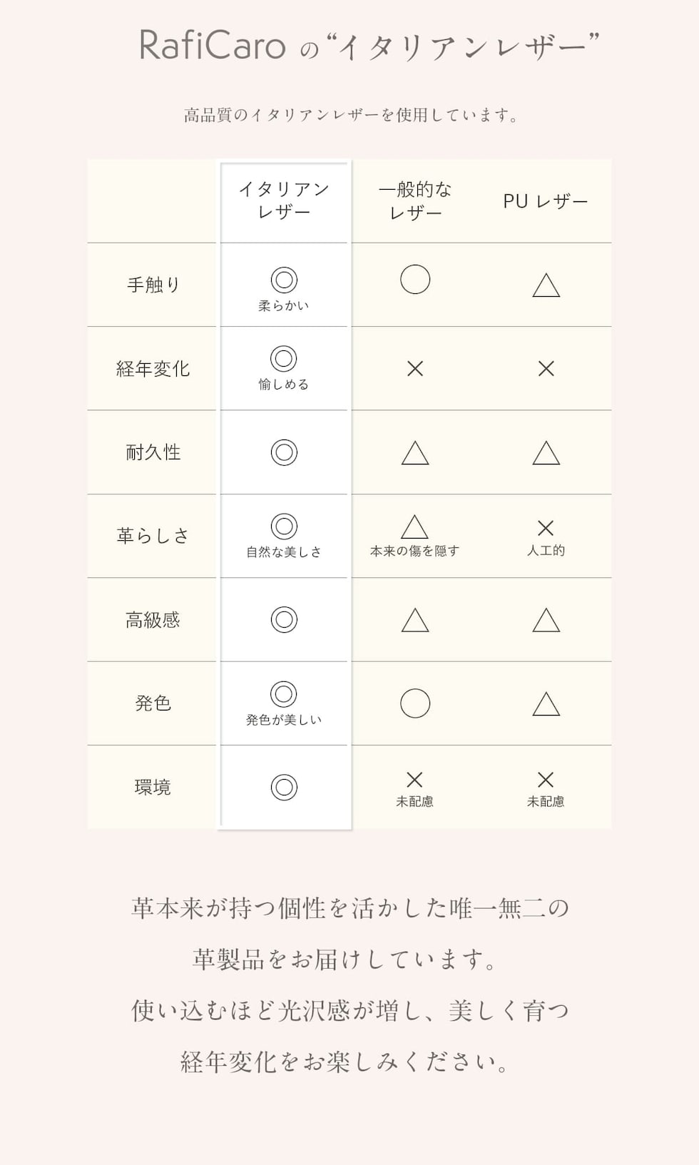 長く使用していると艶や色合いが深まり、より一層愛着のわくアイテムです。