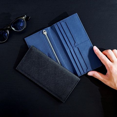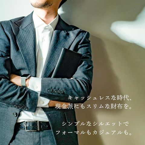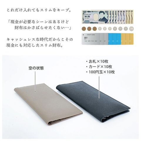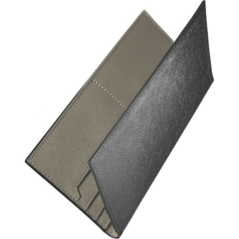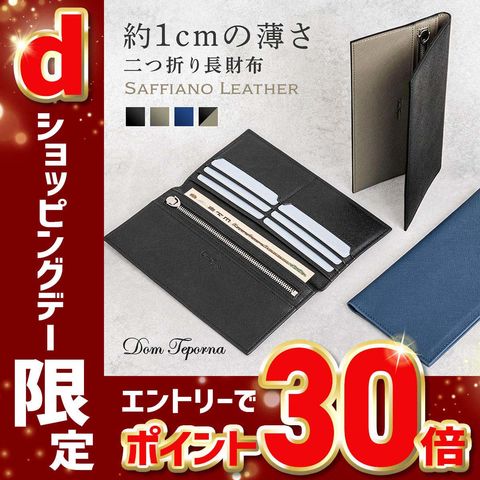 【12月10日限定ポイント30倍】Dom Teporna 薄さにこだわる牛革二つ折り長財布 カード大容量6枚 black grey/ブラック×グレー