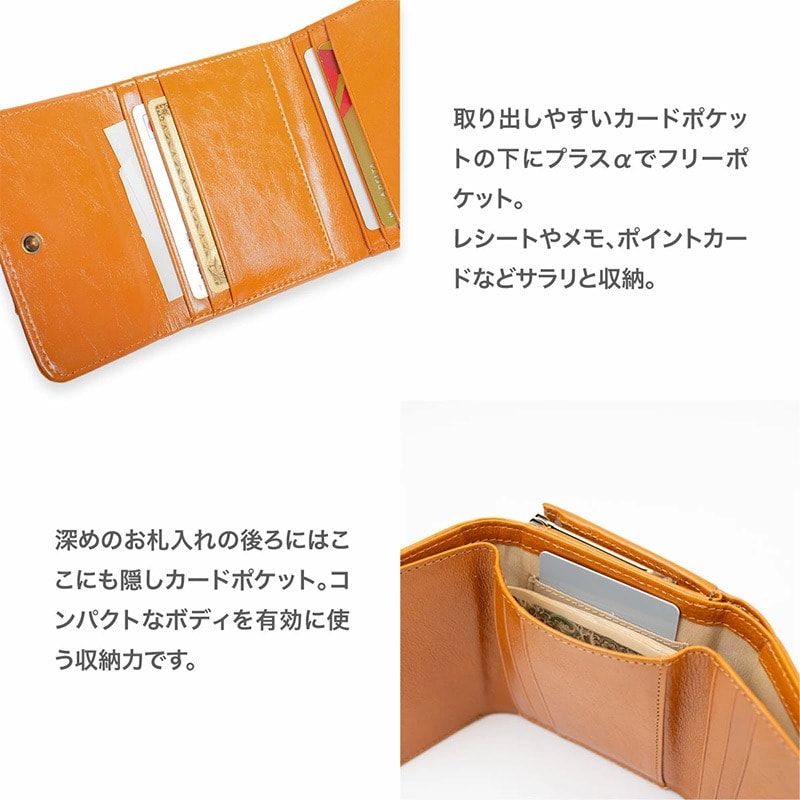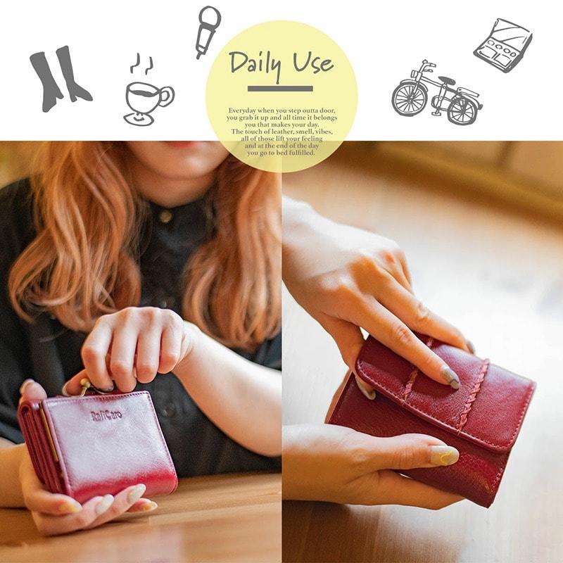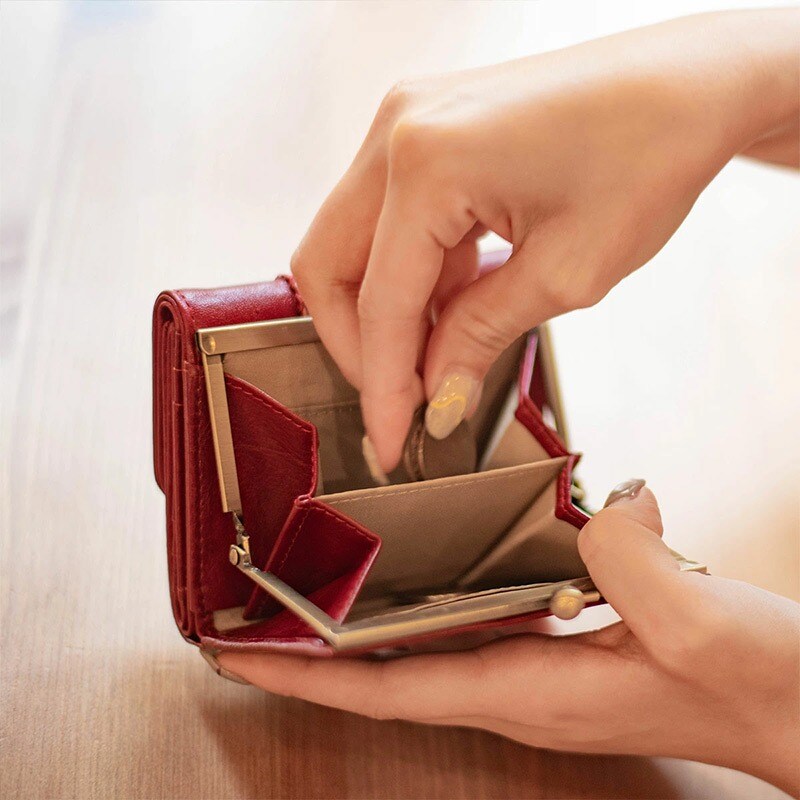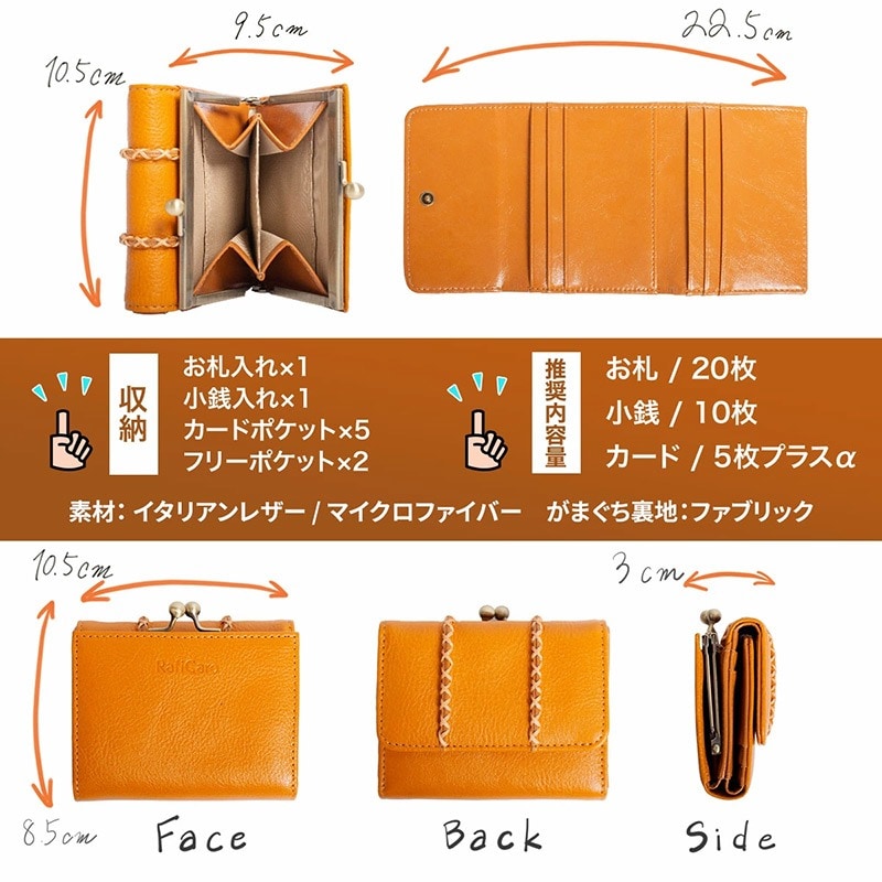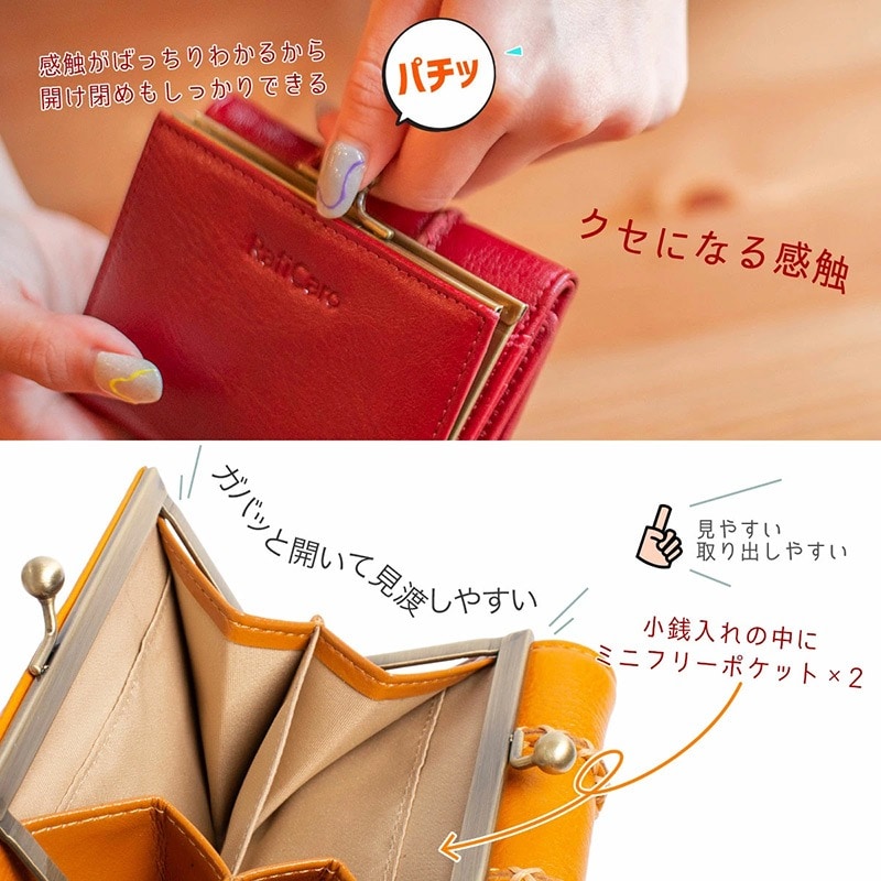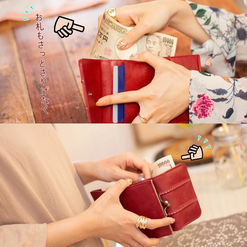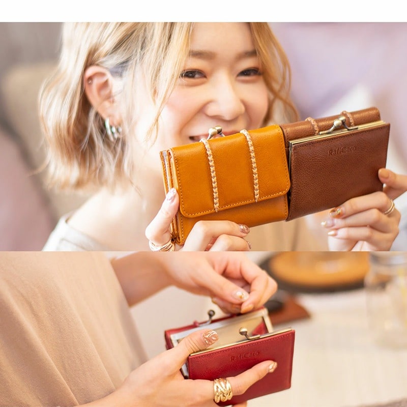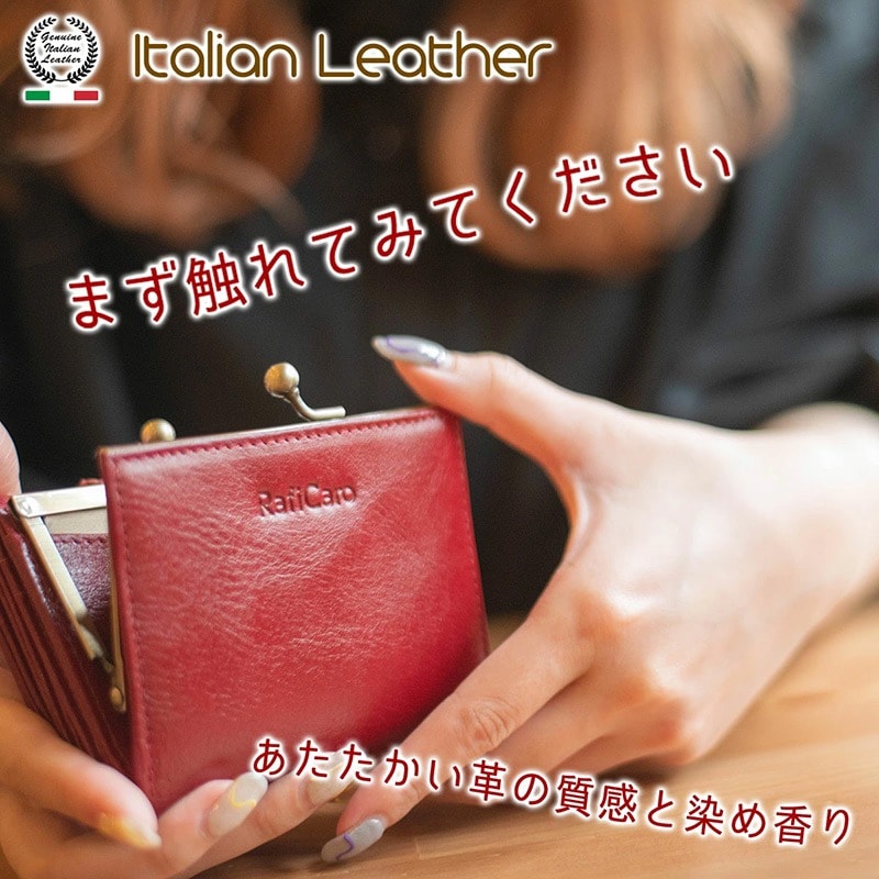 RafiCaro がま口 本革 三つ折り財布 イタリアンレザー red/レッド