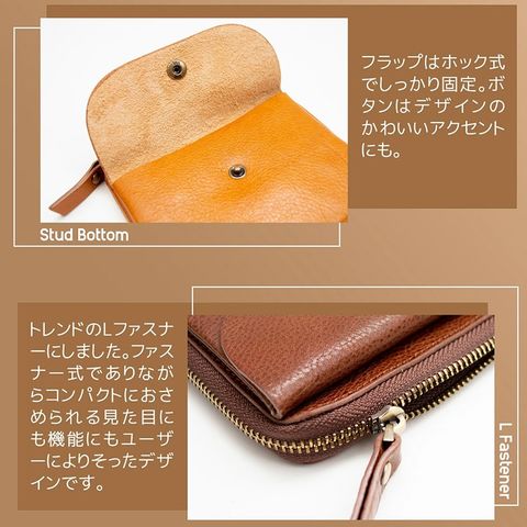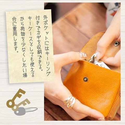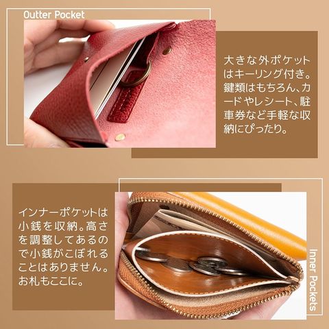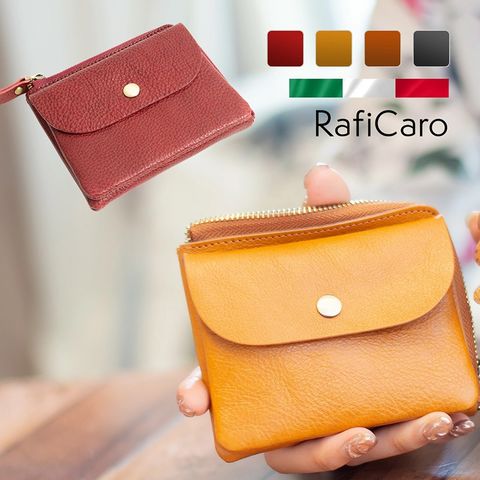 RafiCaro 本革ミニ財布 キーリング付き外ポケット L字ファスナー darkbrown/ダークブラウン